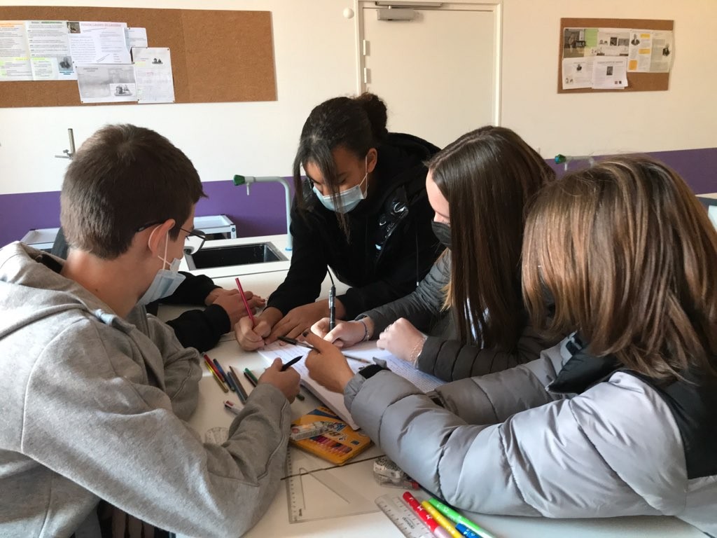 L'épreuve consistait à répondre à des questions mêlant des Sciences Physiques et des SVT. La classe s'est divisée en 5 groupes de travail réfléchissant chacun à une partie du sujet. Lorsqu'un groupe avait terminé, il venait aider les autres pour tenter de répondre à un maximum de questions. Leur travail collaboratif et collectif leur permettra-t-il de se qualifier pour la finale qui aura lieu le 03 juin 2022 au campus de l'Université Paul Sabatier ? Réponse avant les vacances de Pâques !