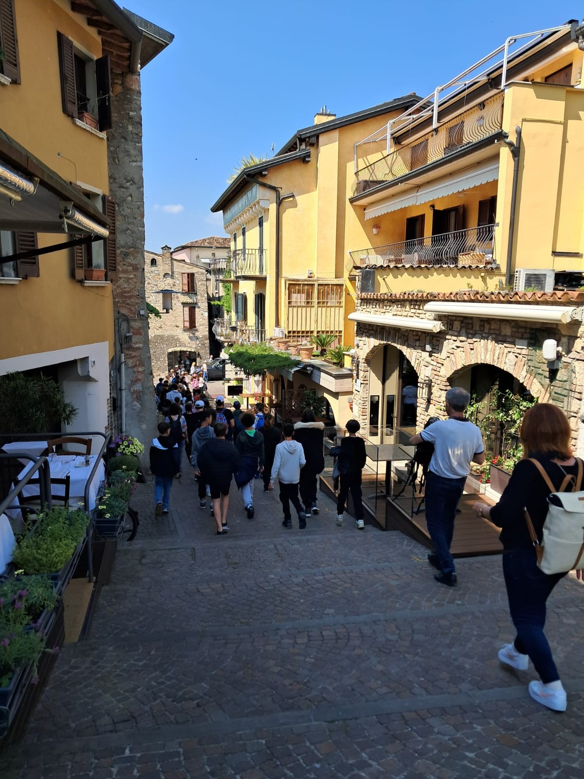 Après une première nuit relativement calme dans le bus, nous sommes arrivés à Sirmione sous un très beau soleil. Visite guidée de la ville, suivie d'une petite croisière sur le lac de Garde.