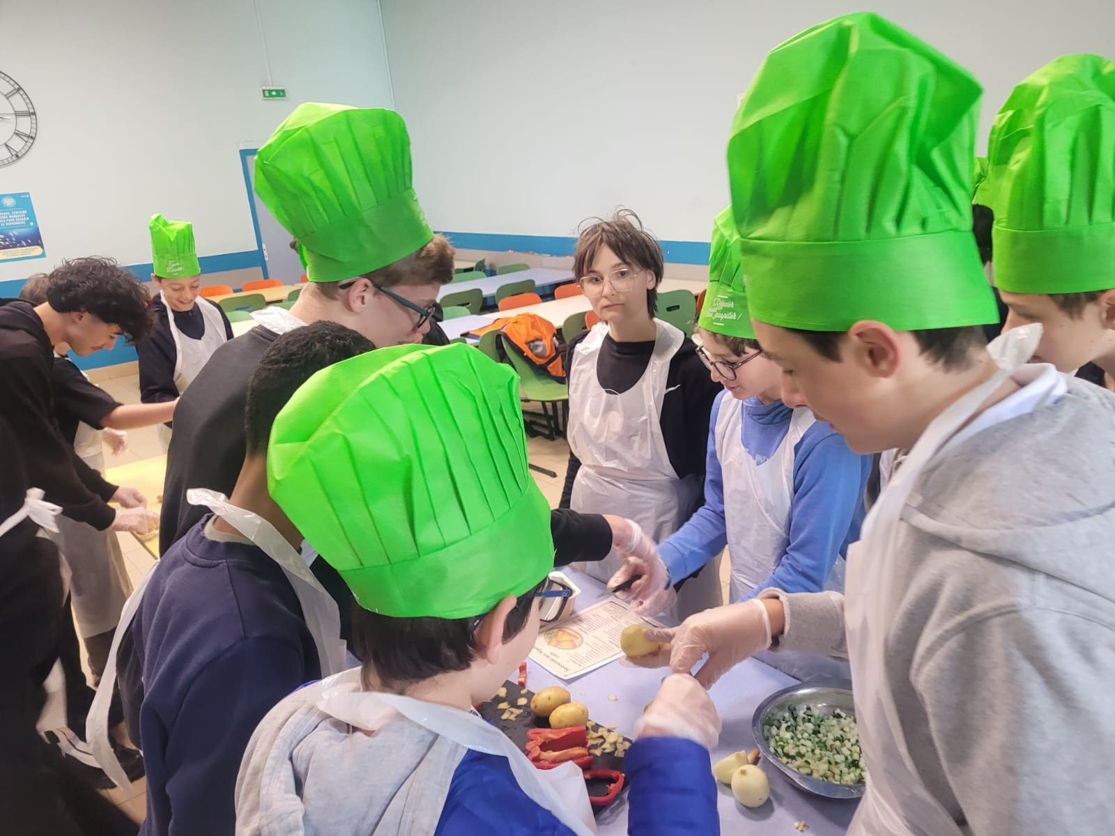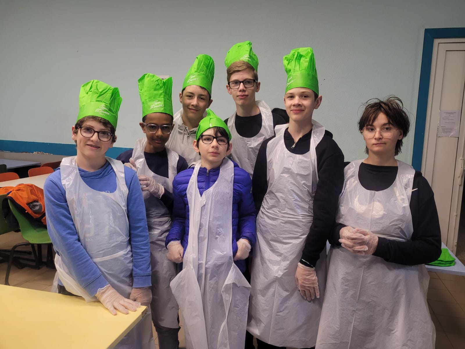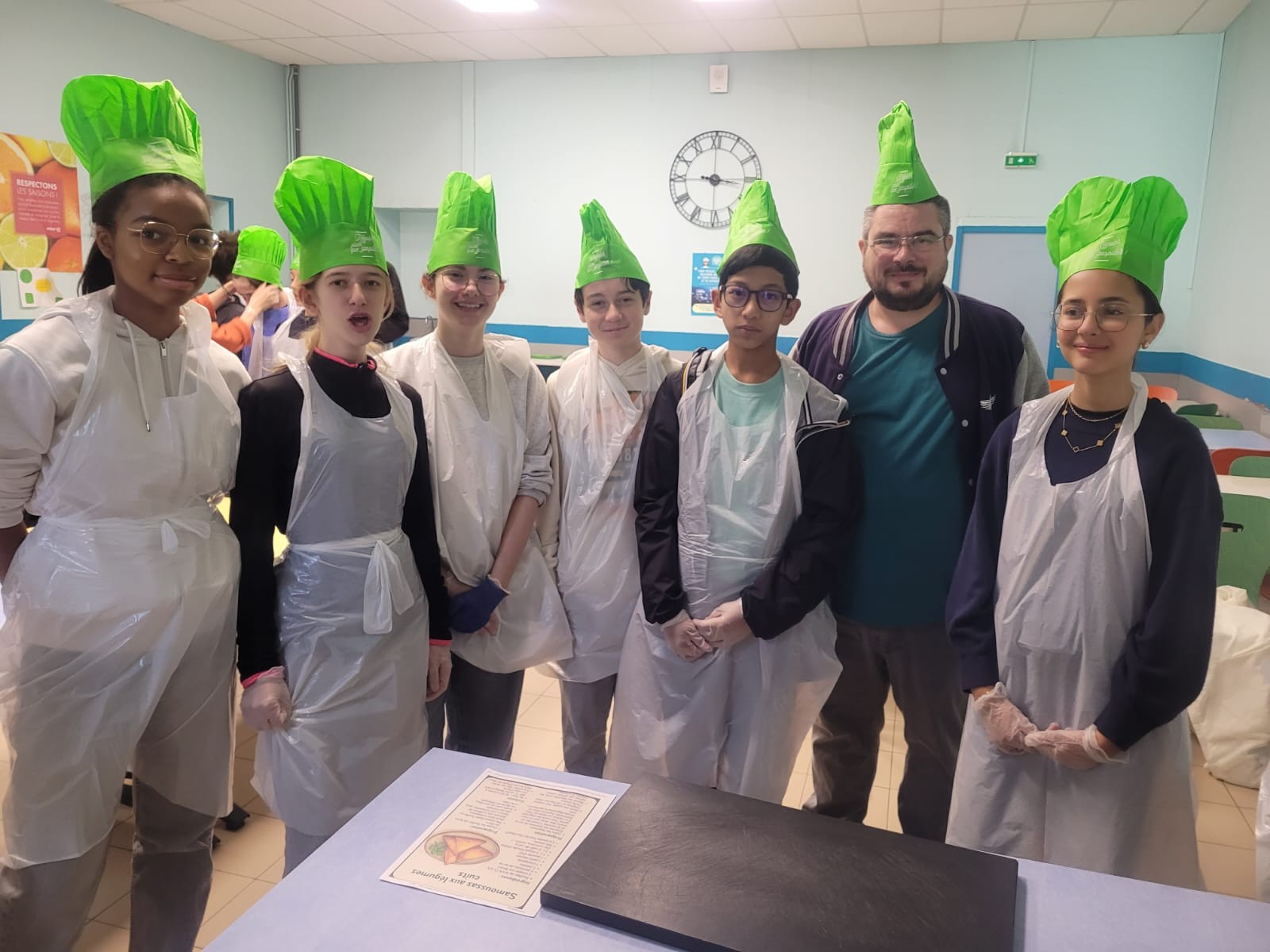 Sur une proposition de Mme Clément et Anna Lisa, notre chef de cuisine Elior, les 4ème ont participé à un Atelier Top Chef au Collège. Merci à elles !