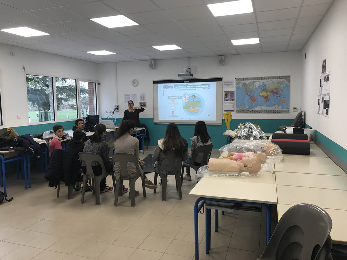 11 avril 2018 4ème Formation PSC1 Collège Les 4èmes qui ne sont pas partis en voyage ont eu droit à une semaine aménagée avec plusieurs activités. Entre autre, ils ont suivi une formation au PSC1 faite par Mme Zabotto. Voici quelques photos d'une séance.