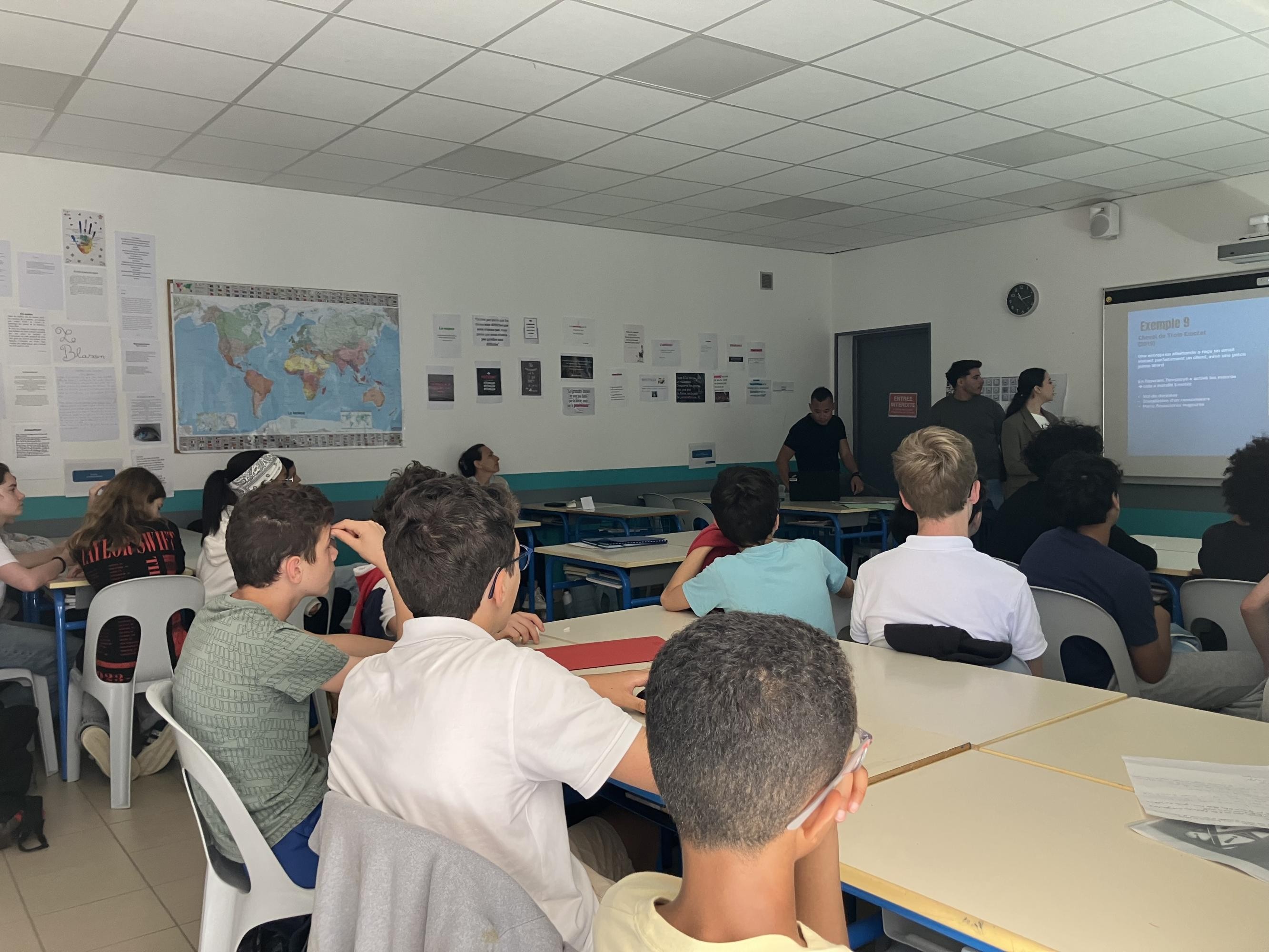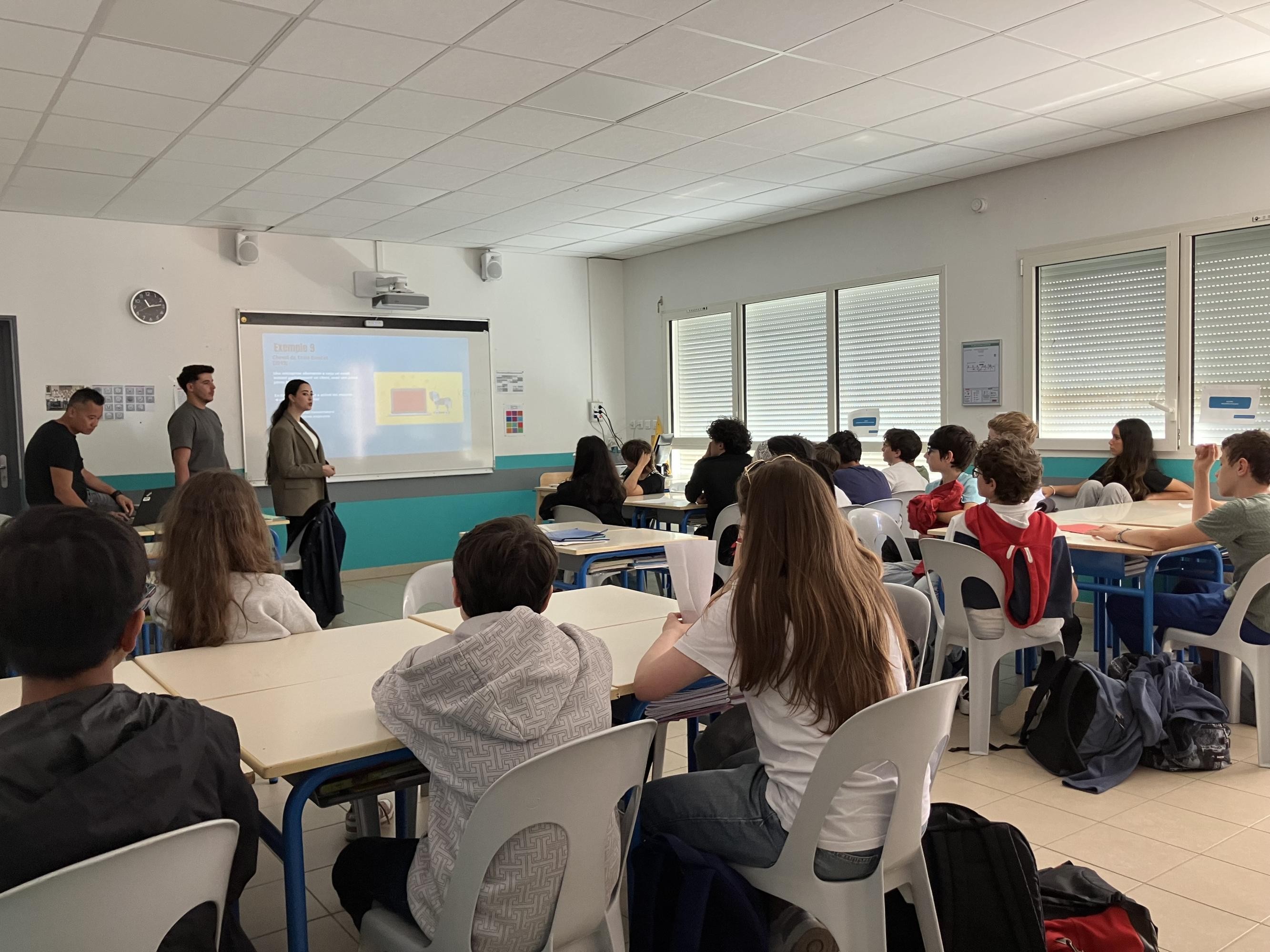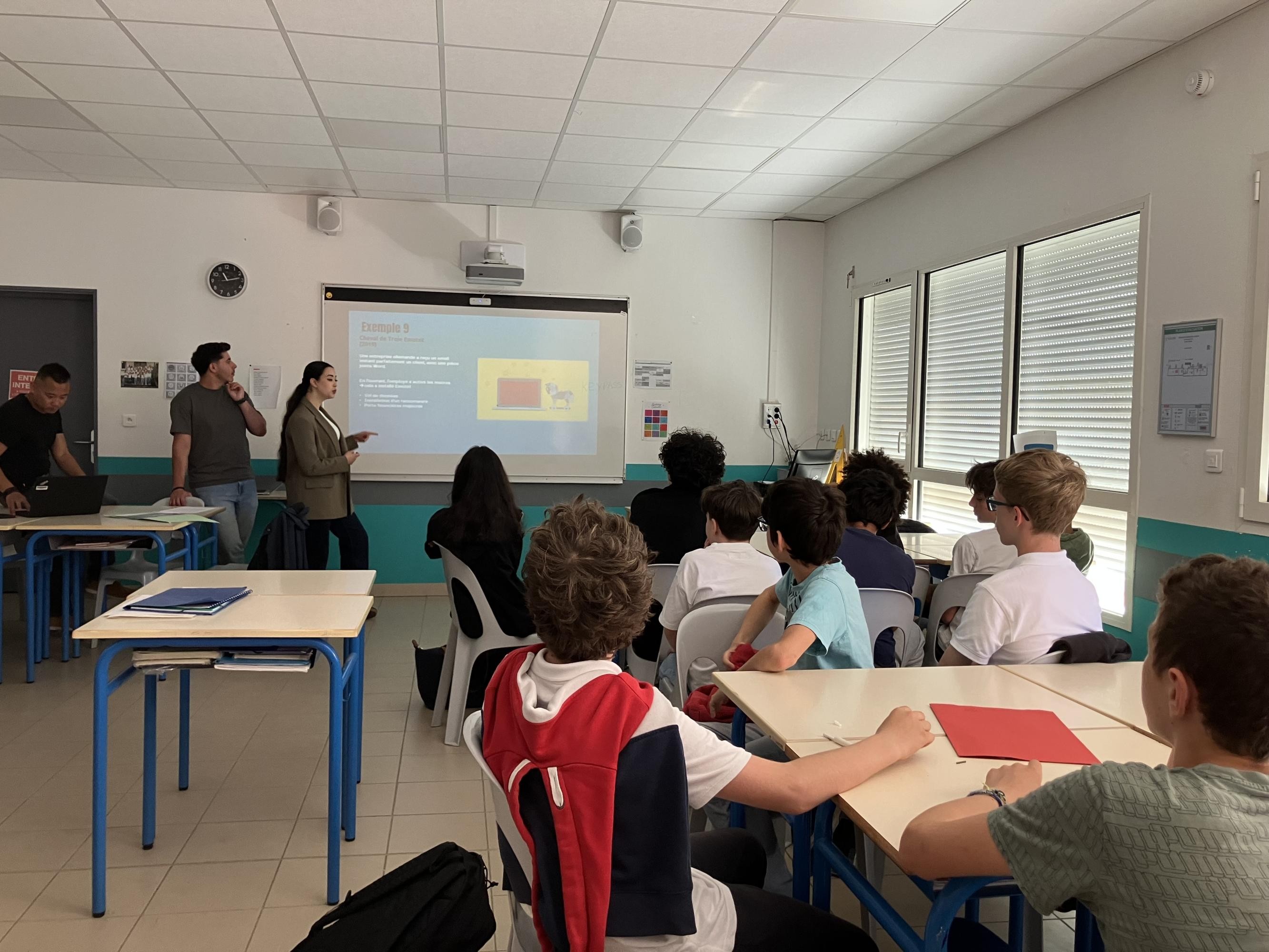 Alexandre, Mathias, Wiam et Christine, salariés d'une Entreprise de Service Numérique, ont animé des jeux de sensibilisation sur la cybersécurité à des élèves de 4 eme au nom de "Cyber4good".