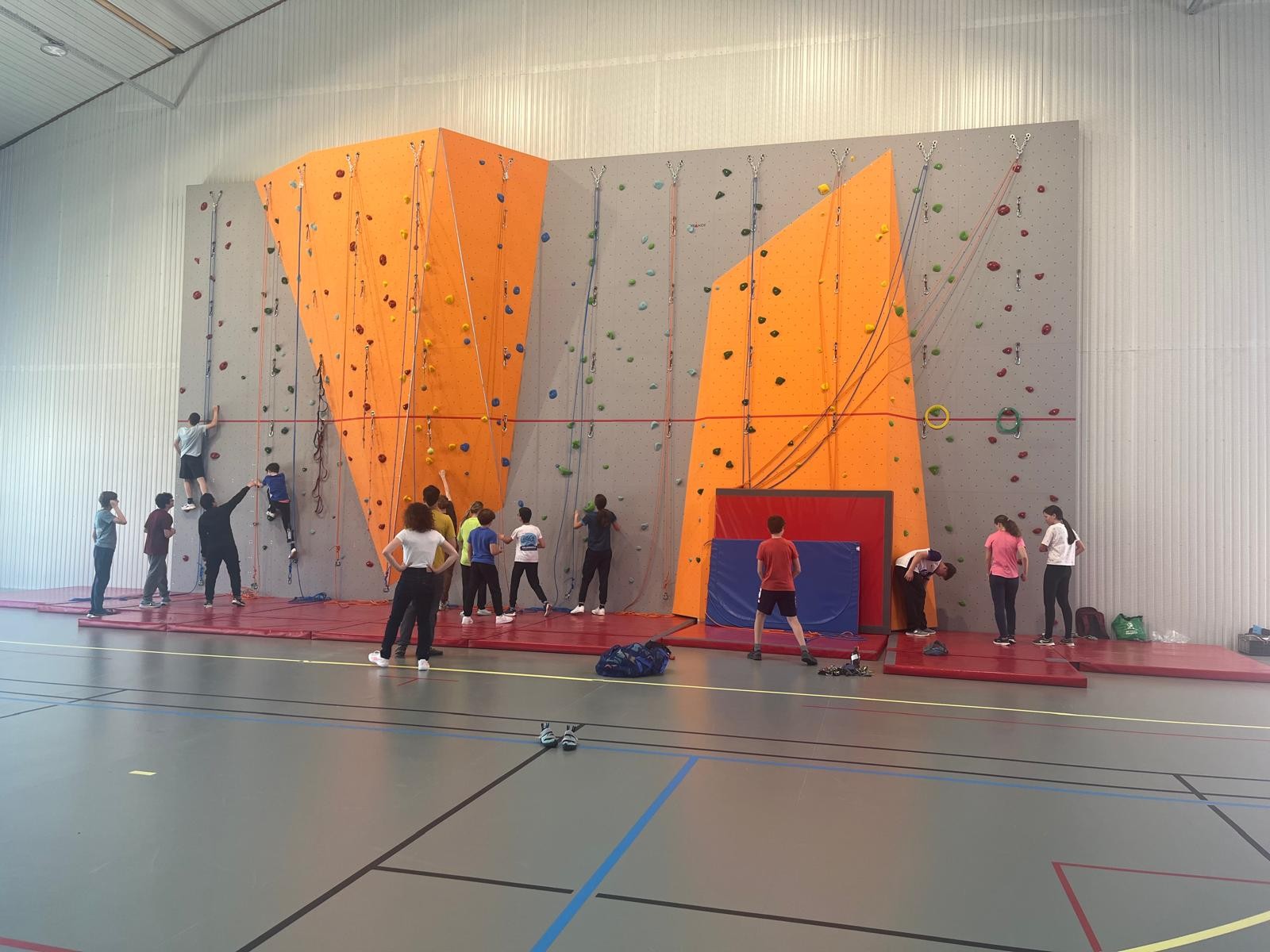 Aujourd’hui, jeudi, journée sportive et découverte de nouvelles activités : Spike Ball et escalade dans notre tant attendu gymnase.