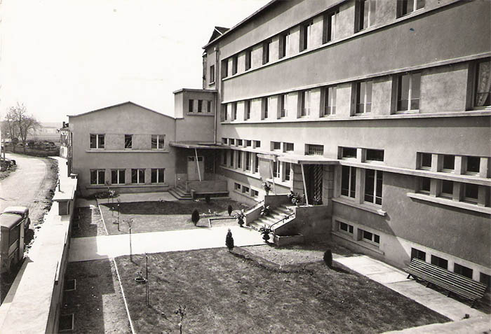 Lire la Suite Ces photos ont été prises à la fin la construction du bâtiment central reliant le bâtiment de l’horloge et la chapelle. Le bâtiment inauguré officiellement le 18 mai 1959.