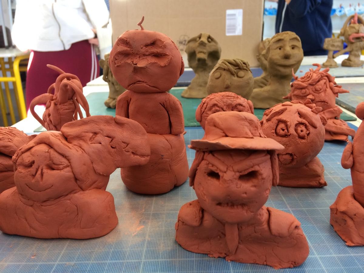 Lire la Suite Aujourd'hui épisode 3 : L’art du modelage sur le thème des expressions du visage des 3èmes.Madame Bécus professeur d’arts plastiques