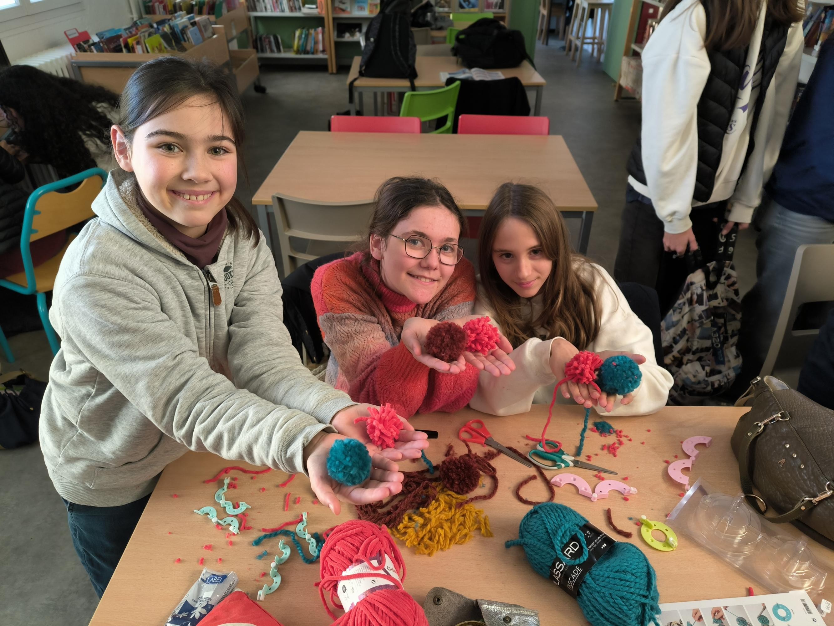 Depuis quelques semaines déjà, quelques élèves de 6eme D ont trouvé une bien amusante façon de terminer la semaine ! Le Vendredi en S4, avec Mme Cassan, c'est atelier laine, crochet et....pompons !! Notre tout dernier projet, un joli petit tapis....tout pompon pour chacune !