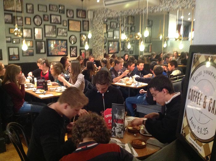 Première photo : We are having "cream tea" now ! We are having cream tea now beside Covent Garden. After, we'll go shopping !