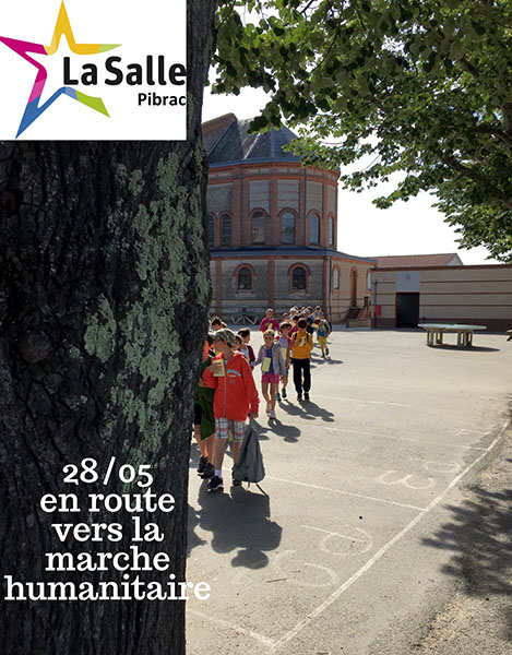 Le 28 Mai 2015 a eu lieu la traditionnelle Marche Humanitaire de l'Ecole et du Collège de La Salle de Pibrac. Organisée une fois tous les deux ans, elle propose aux élèves de l'établissement de marcher une journée sur un parcours à travers la forêt de Bouconne. Les élèves du CP à la 3ème ont été invités à trouver des sponsors sous forme de forfait à la journée ou au kilomètre.…