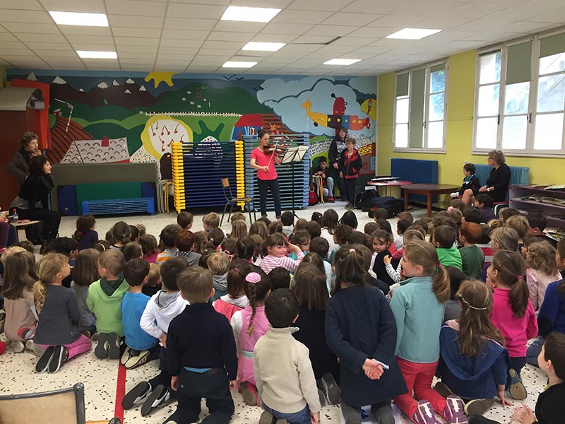 Suite à un travail des élèves de maternelle sur les instruments de musique, 4 élèves du collège sont allés les rencontrer pour parler de leurs instruments mais aussi jouer un petit morceau...