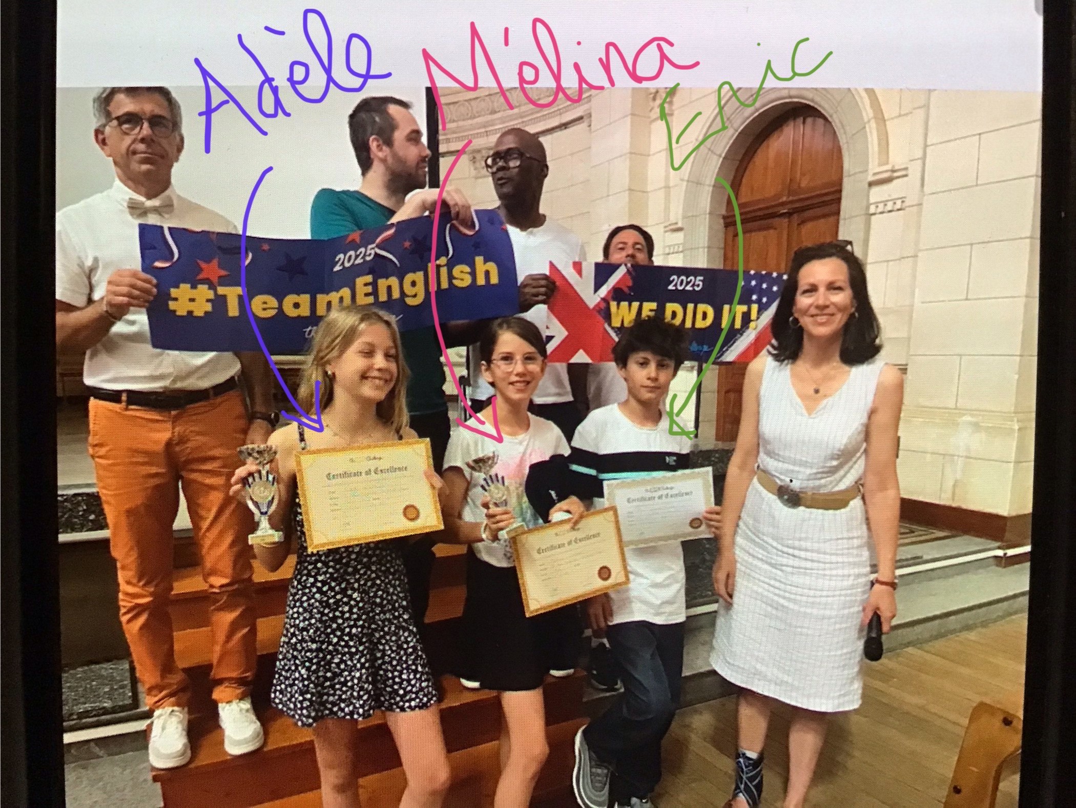 La remise des récompenses s’est poursuivie en cette dernière semaine au collège. Les gagnants de chaque niveau ont été félicités lors de la cérémonie à la chapelle. Les prix supplémentaires ont été distribués, tels un Certificate of Excellence, a cap, a cup and a Bluetooth speaker.  Congratulations !Joshua WU - 6 A  ( 1er  du niveau et 1er Occitanie sur 2075 candidats) Anastasia BOTH  - 6B …