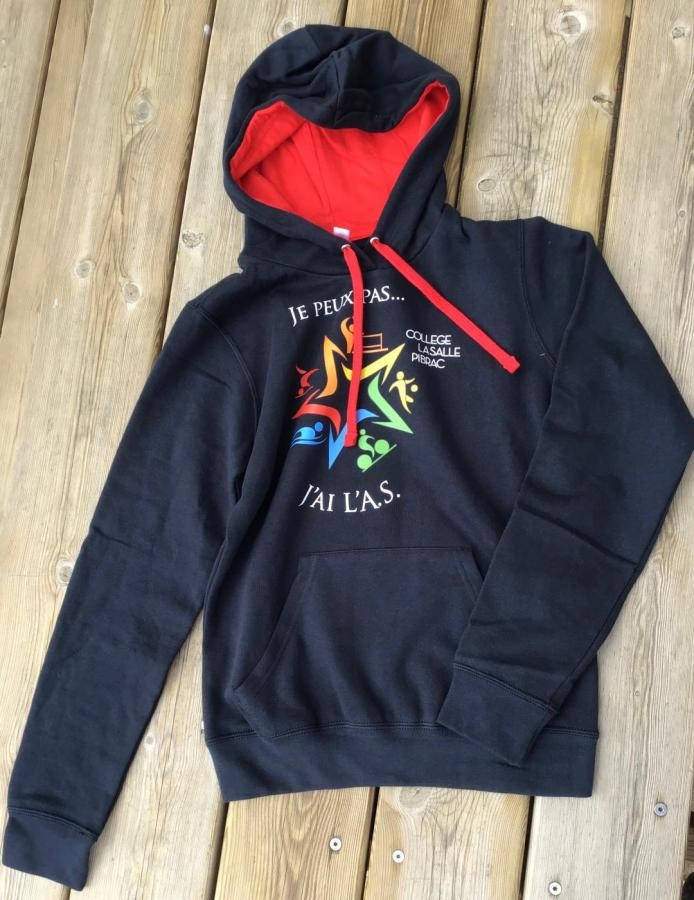 Les sweat-shirts de l’AS sont arrivés.Si votre enfant est inscrit dans une des AS du collège (danse, fitness , natation, tennis de table ou vtt), vous pouvez l’acheter pour 30€ par chèque uniquement à l’ordre de OGEC La Salle PIBRAC.Renseignements et essayage possible auprès de votre professeur de votre AS.L’équipe EPS