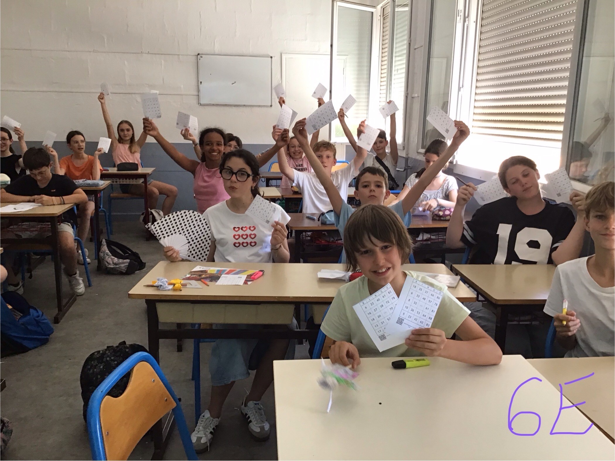 Au programme de la dernière séance d’anglais pour les 6D-6E : SUMMER BINGO ! Chaque participant a apporté et remporté un cadeau en lien avec l‘été : de nombreuses gourdes amusantes, des ventilateurs de poche, des lunettes, des jeux de plage ... et même une canne à pêche ! De quoi affronter la chaleur estivale et bien s’amuser. Cela a permis de réviser encore les nombres, de découvrir le nom des…
