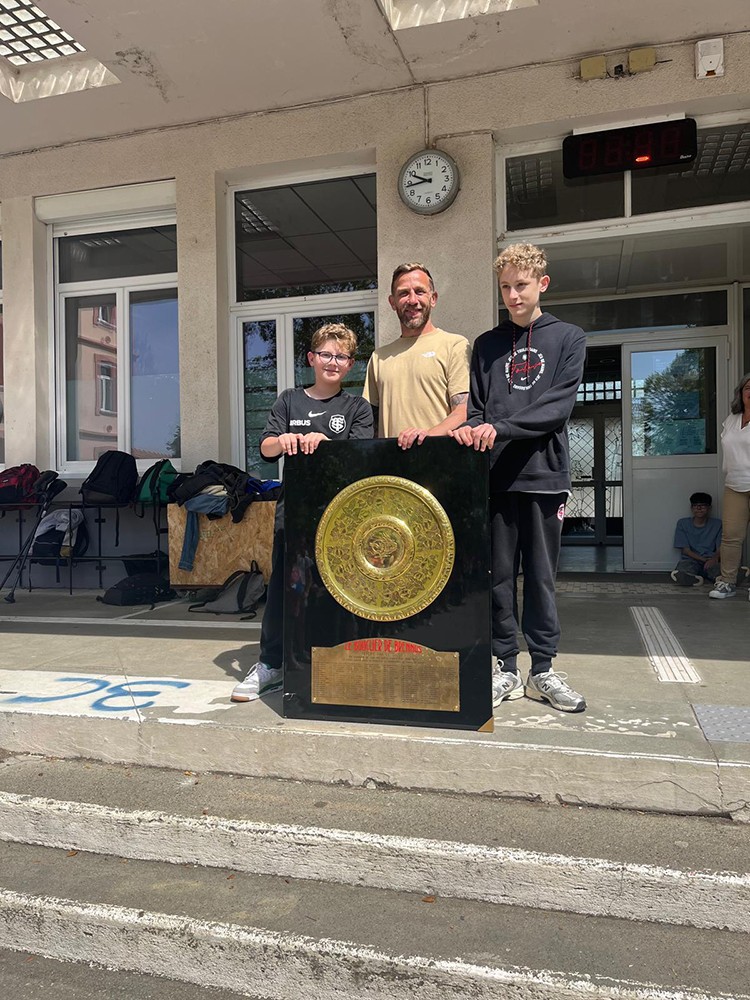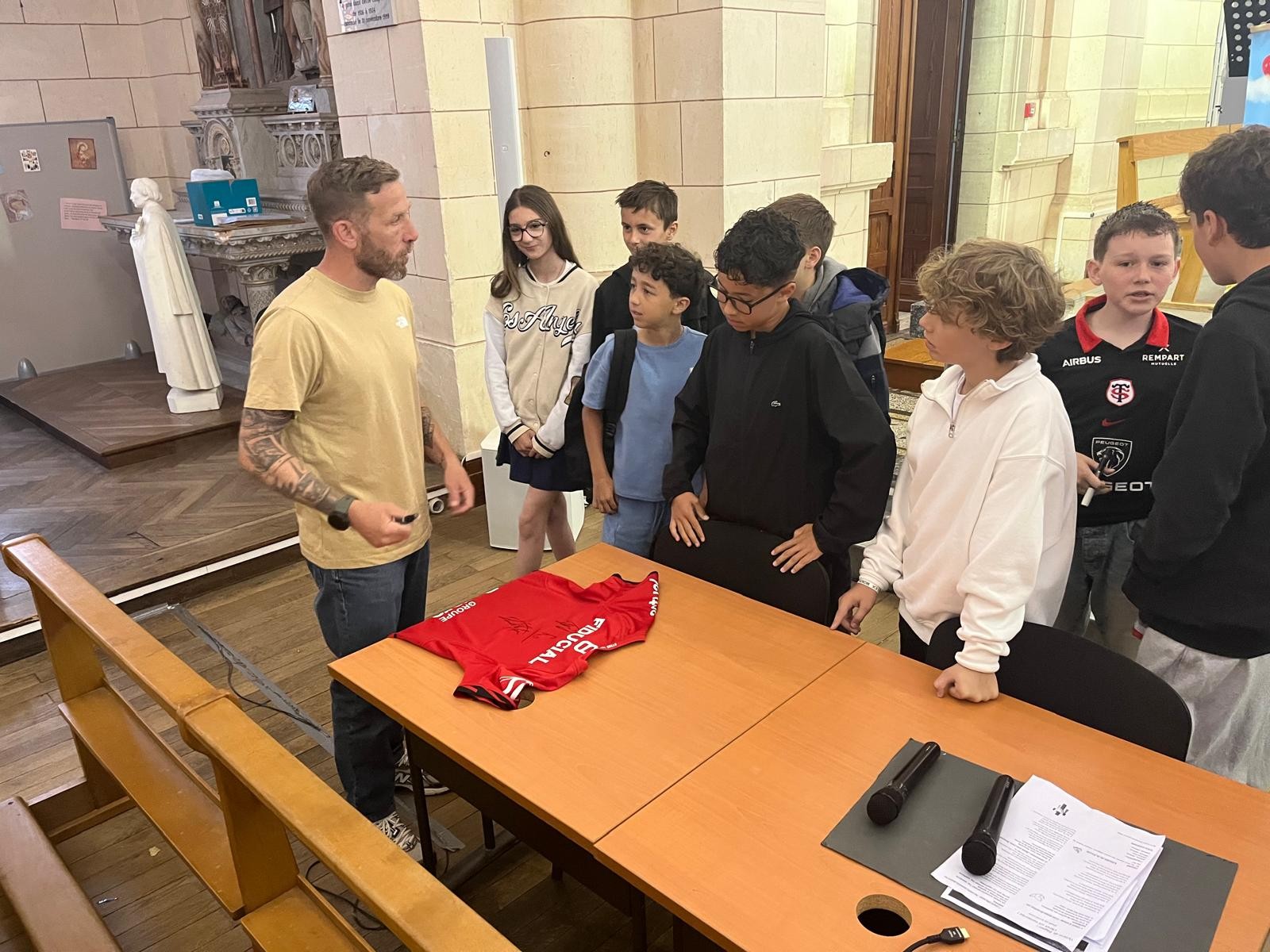 L'après-midi, David Mêlé, entraîneur au Stade Toulousain, est venu avec le Bouclier de Brennus remporté l'an dernier pour échanger avec nos élèves. Voici quelques images de cette superbe après-midi.