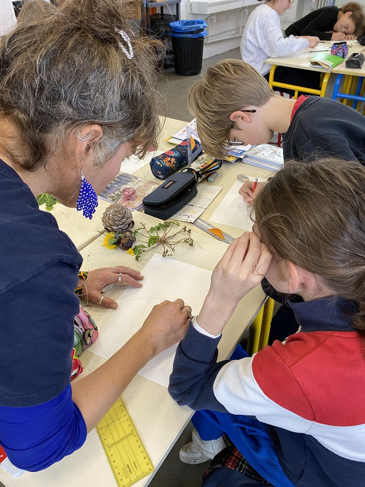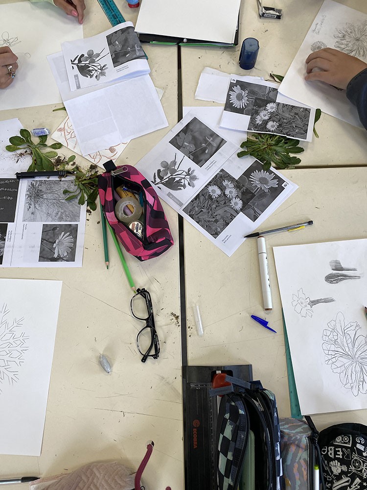 La problématique de notre projet : Comment prendre conscience de notre environnement par le biais combiné de la pratique artistique et scientifique ? Dans un premier temps : Les élèves ont été sensibilisés à l’observation des «plantes utiles» en milieu urbain avec Boris Presseq comme guide. Les jeunes ont pu nommer les plantes, les observer, les comprendre. Dans un second temps: ils ont travaillé le dessin d’observation ( avec les contraintes scientifiques) et compris le rôle et l’importance du dessin botanique lors d’un atelier avec Delphine Zigoni. Les élèves retiendront qu’il faut faire preuve de patience pour dessiner et qu’il faut prendre le temps de poser son regard sur le monde qui nous entoure afin de mieux le comprendre et ainsi de le préserver. Merci pour ces moments partagés.