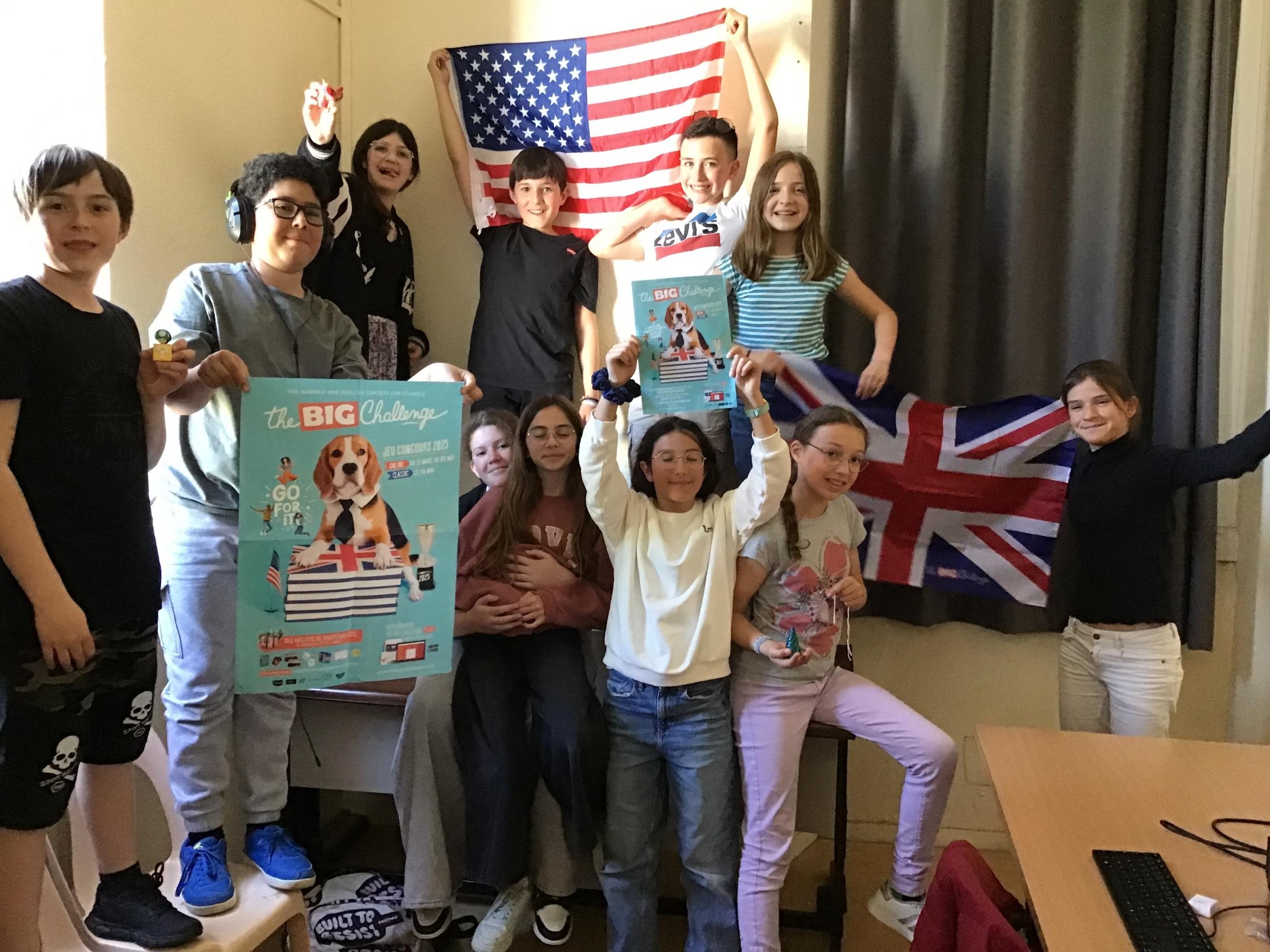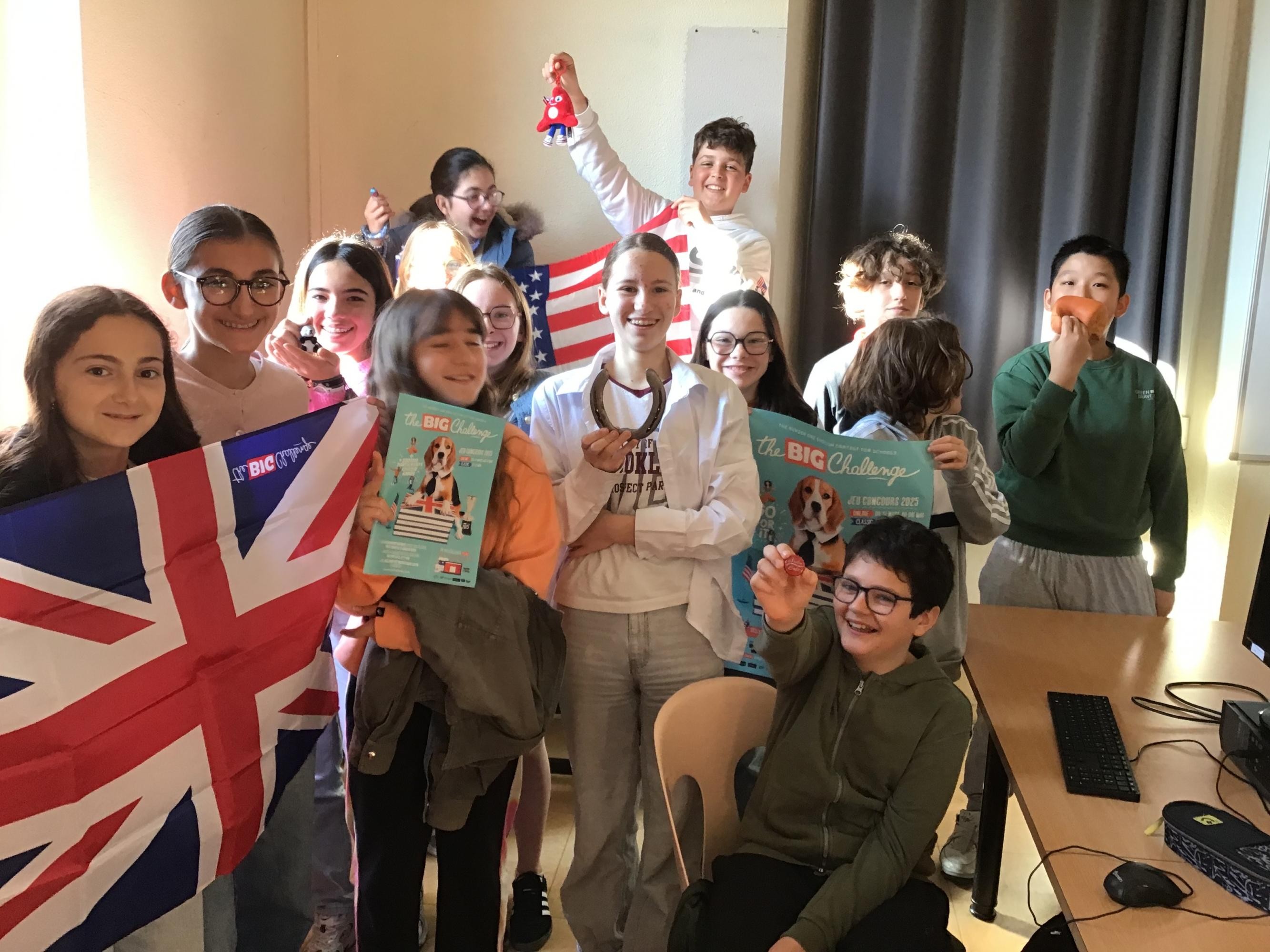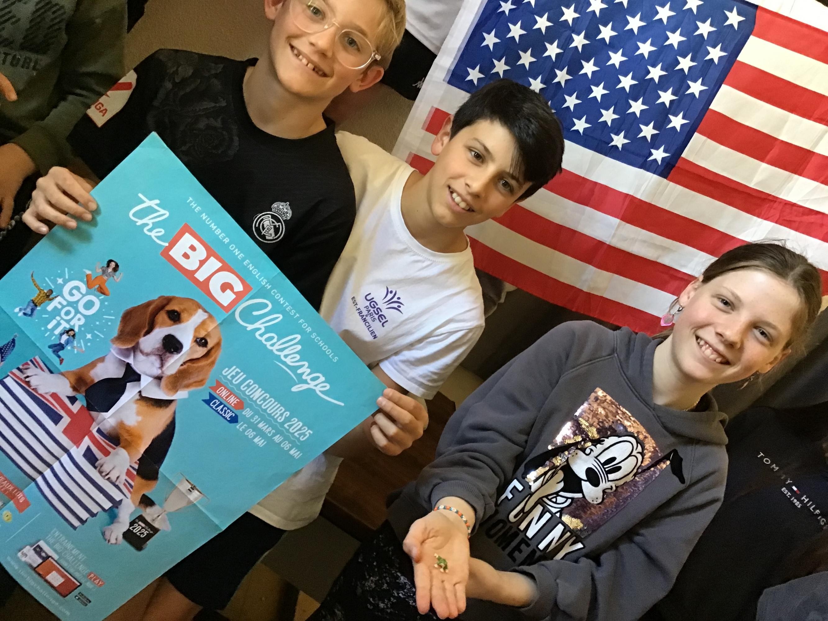 Lancée début avril pour les classes de 6èmes et de 5èmes, l’édition online BIG CHALLENGE 2025 s’achèvera au retour des vacances de Pâques. C’est une nouvelle année record avec 223 participants! Les élèves se sont montrés motivés pour décrocher les nombreuses récompenses proposées (diplômes d’honneur, posters, agendas, calendriers, drapeaux US/UK, livres, T-shirts … et peut-être une tablette ou un voyage si un rang national est atteint . Pour mettre toutes les chances de leur côté, certains élèves n’ont pas hésité à apporter un lucky charm.