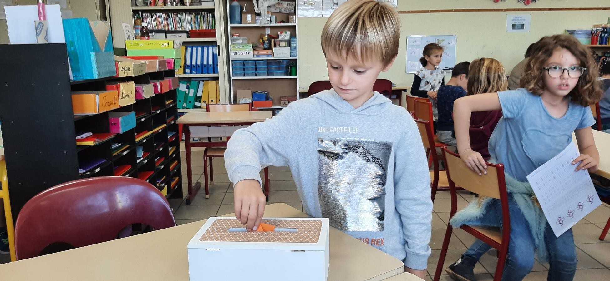 Dès la classe de CP, les enfants ont pu découvrir le fonctionnement du système démocratique : candidature, bulletin de vote, urne, feuille d'émargement, carte d'électeur, isoloir, dépouillement.