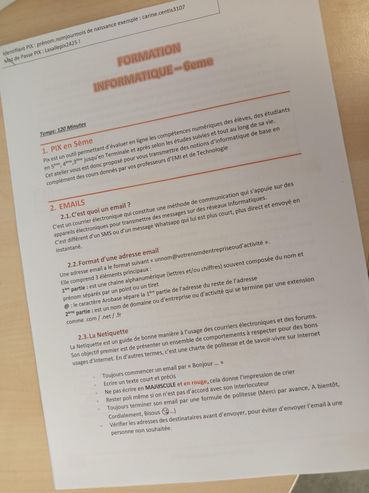 Un grand merci à Mr Larguier qui est passé par dans les classes de 6èmes pour une formation à l'informatique en relation avec PIX.