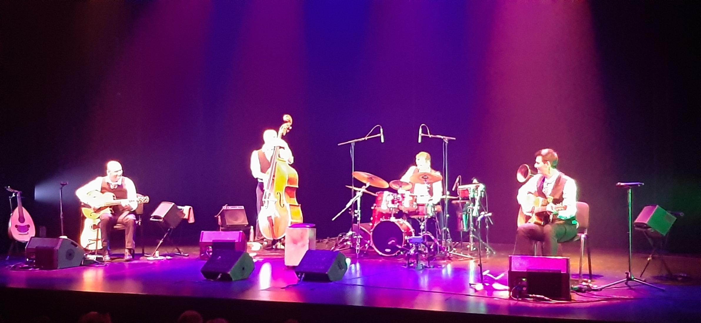 Les élèves ont embarqués avec Mystère trio 4tet dans un tour du monde musical : à Cuba à la rencontre des salseros et du tres, au Maroc au son du oud et des rythmes gnawas, en Amérique du Sud pour découvrir le combitango, ou encore dans les Balkans…Un véritable swing du monde où l’on prends le temps d’apprécier toute une variété d’instruments à cordes (guitare, oud, tres, contrebasse) et de multiples percussions (batterie, cajon, derbouka, carcabous, bongos).