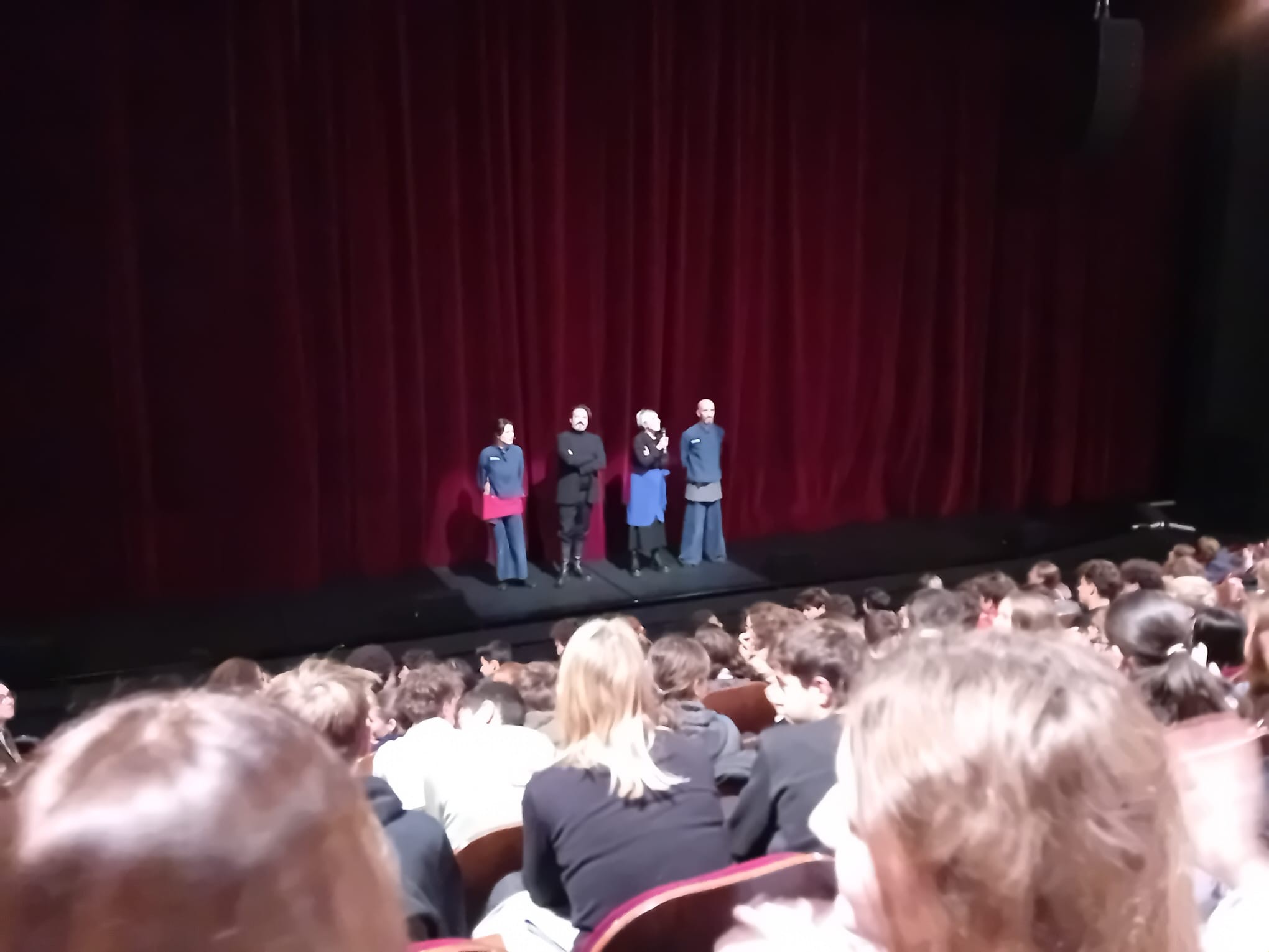 Ce vendredi 5 décembre, tous les élèves de 3èmes sont allés au théâtre Altigone à Saint Orens, afin d'assister à une mise en scène de 1984. Toutes les classes étudient en ce moment le fameux roman de George Orwell en cours de français ; nous avions pu formuler des hypothèses sur les choix à opérer pour passer du roman au théâtre. La réalité a dépassé tout ce que nous avions imaginé, car tout le décor était figuré par des images cinématographiques. Ce choix a suscité le débat entre les élèves, mais que c'était bien fait ! Un bord de scène a permis à beaucoup d'entre nous de poser leurs questions. Merci et bravo à la troupe pour sa belle performance !