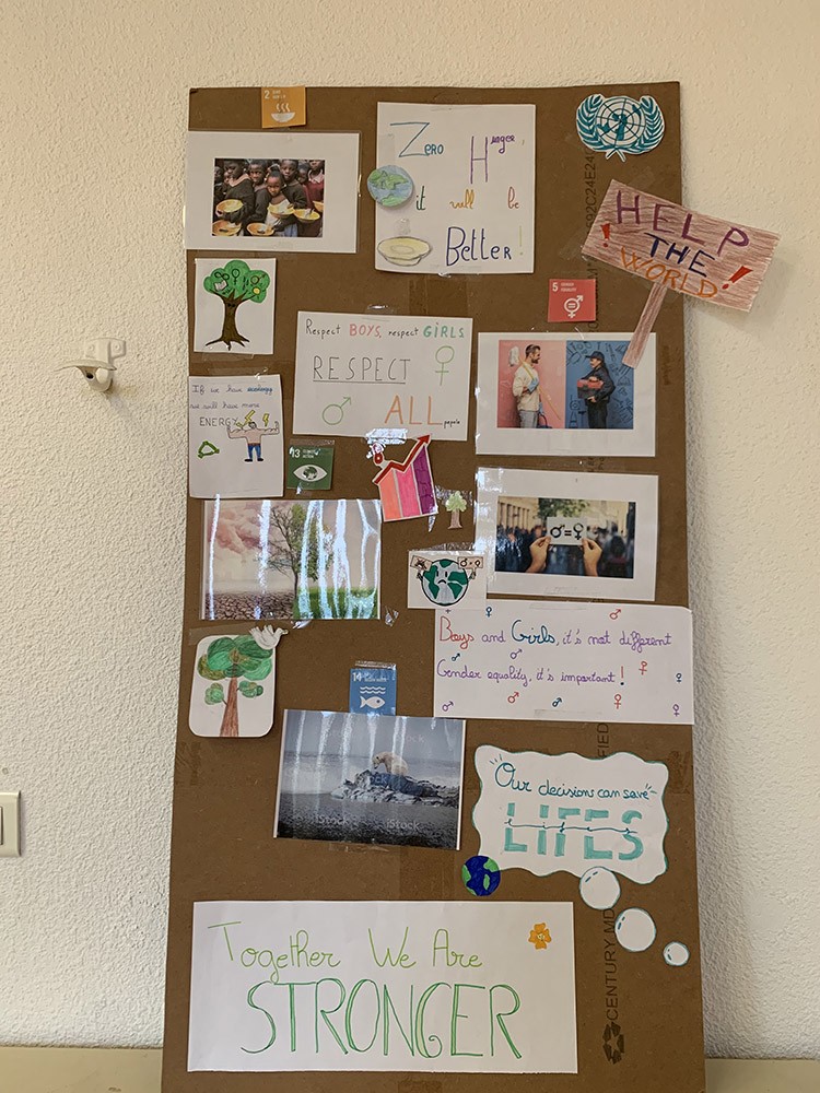 Après avoir présenté leur objet favori lors du « Show and tell », ils ont ensuite découvert les « Sustainable Development Goals » et créé un poster représentant les objectifs qui leur tiennent à cœur : "Egalité homme/femme", " Lutte contre la faim" et "Sauvegarder la planète" seront les fils directeurs de leur année en DNL.