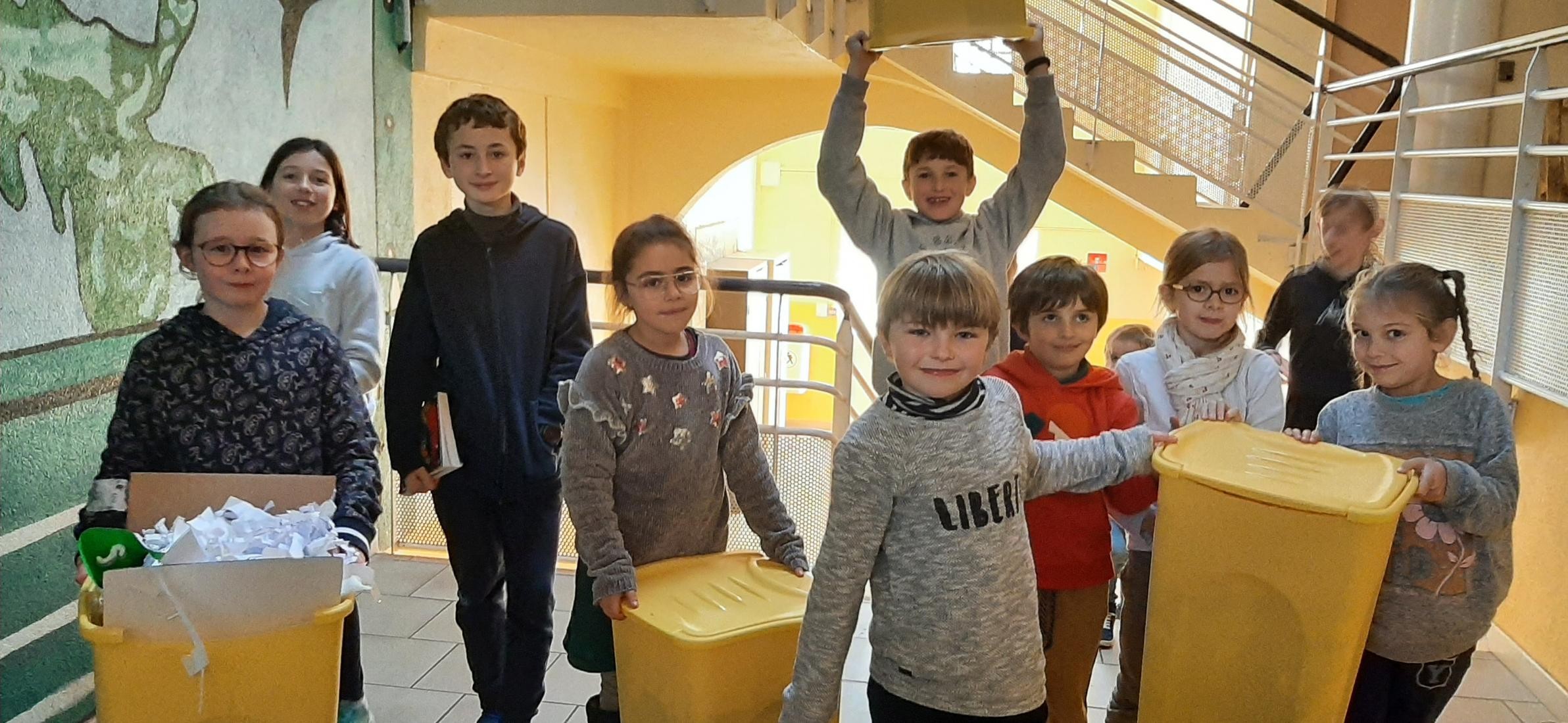 Vendredi 10 janvier, les éco-délégués sont passés dans toutes les classes pour vider les corbeilles à papier dans la poubelle de tri sélectif. Les plus grands étant accompagnés d'élèves de maternelle afin de leur montrer et de leur expliquer cette action. Ce n'est que le début, cette action va devenir hebdomadaire (tous les vendredis après- midi)