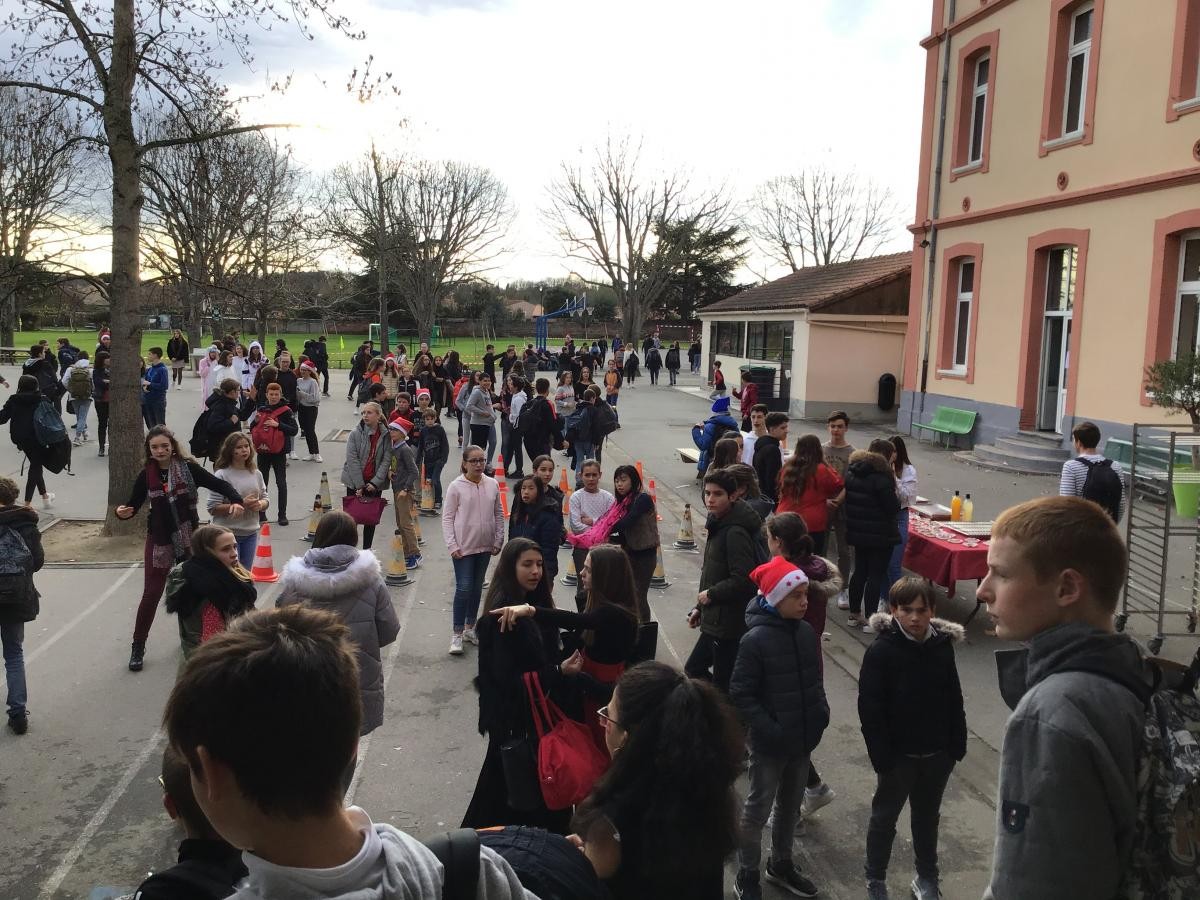 Une fois les sapins prêts, les élèves se sont retrouvés dans la cour pour le défilé. Puis pour finir, un goûter leur a été offert afin de clôturer cette année en beauté.