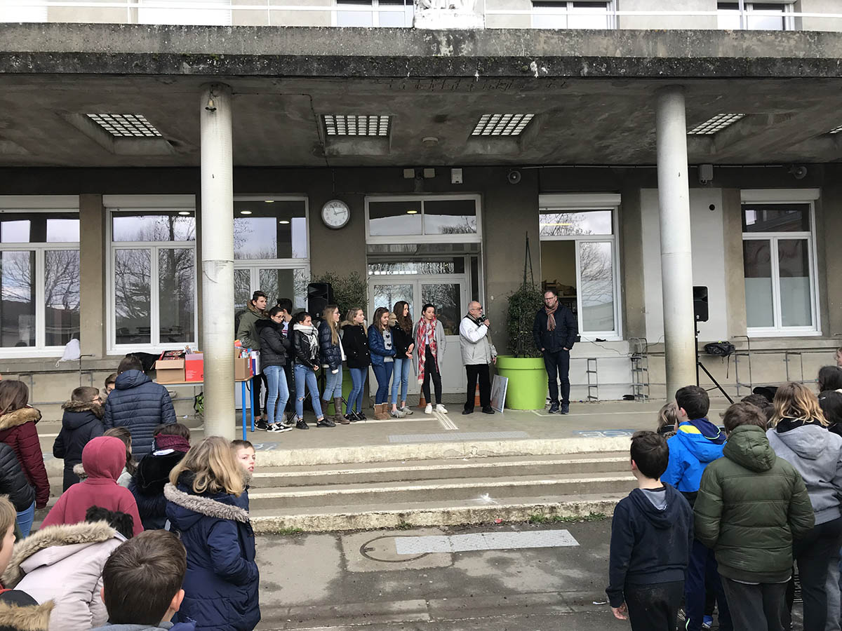 En lien avec les 3èmes engagés et Mme CLEMENT, pendant le temps de l'Avent, les élèves devaient récolter des fournitures pour les enfants malades. Le vendredi 2 Février 2018, le Président de l’association est venu pour récupérer les 6 cartons de fournitures et remercier les élèves pour leur participation. En cadeau, il a offert à l'établissement un cadre.