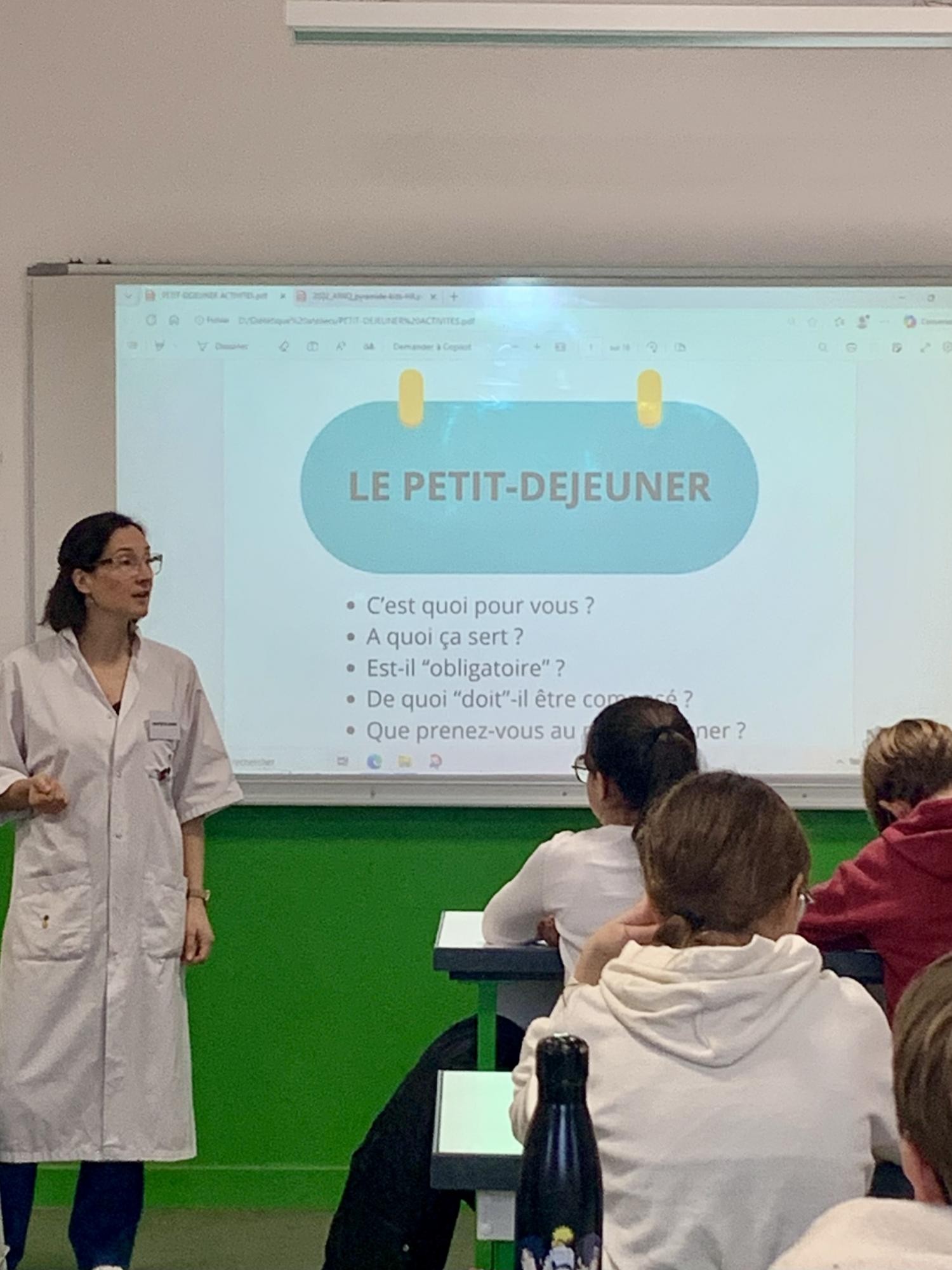 Dans un second temps, Mme Hoareau, diététicienne, a repris avec les élèves la notion d’équilibre alimentaire et l’importance de prendre un petit déjeuner équilibré.