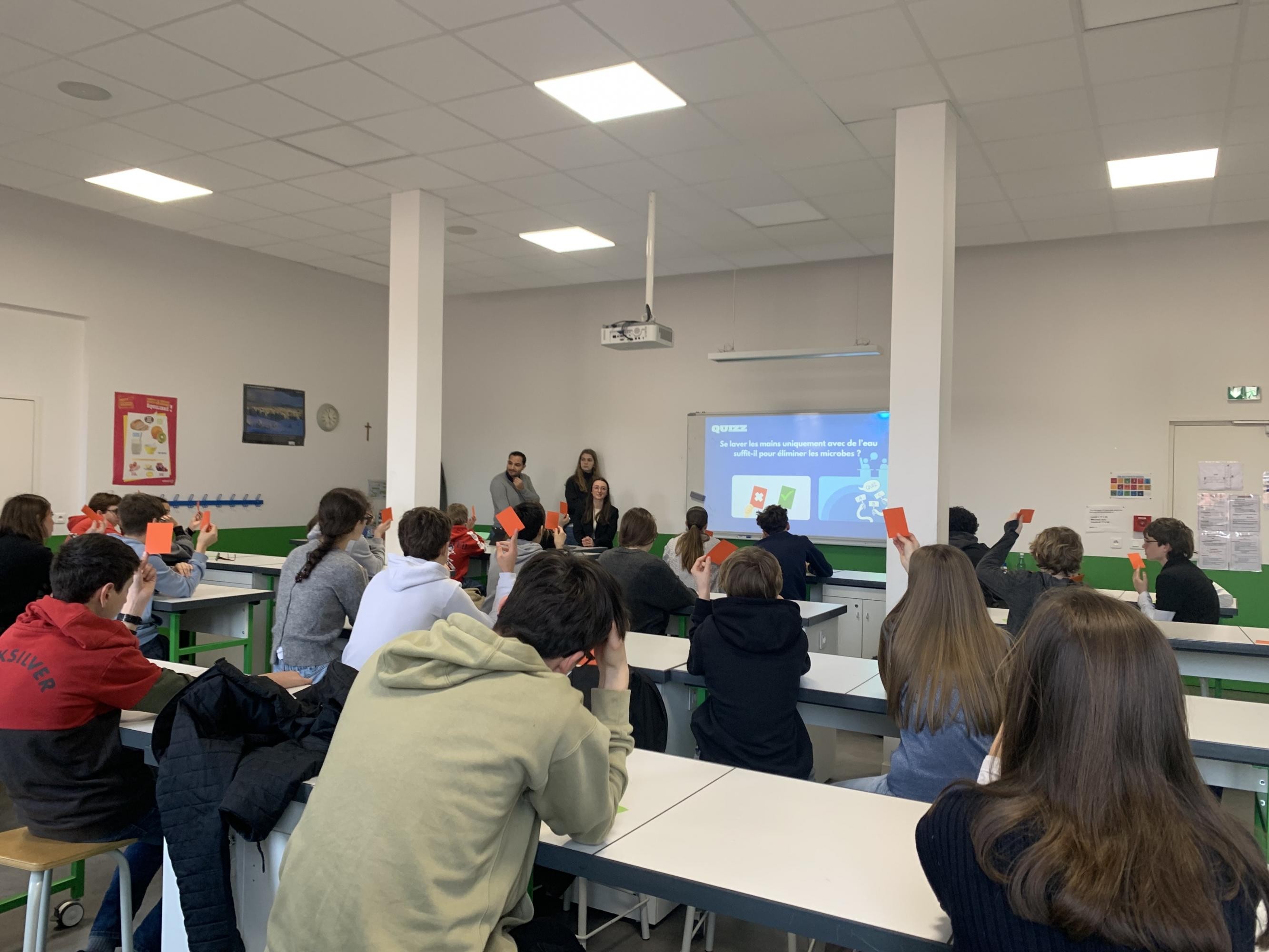 Des étudiants en Santé (futurs médecins, pharmaciens, kinés ou encore infirmiers) ont rencontré les élèves des classes de 3ème dans le cadre de leur service sanitaire afin de parler de prévention des infections et d’antibiorésistance. Ce moment a aussi été l’occasion pour les étudiants d’évoquer leurs parcours après la 3ème et de parler des études dans le domaine de la Santé.
