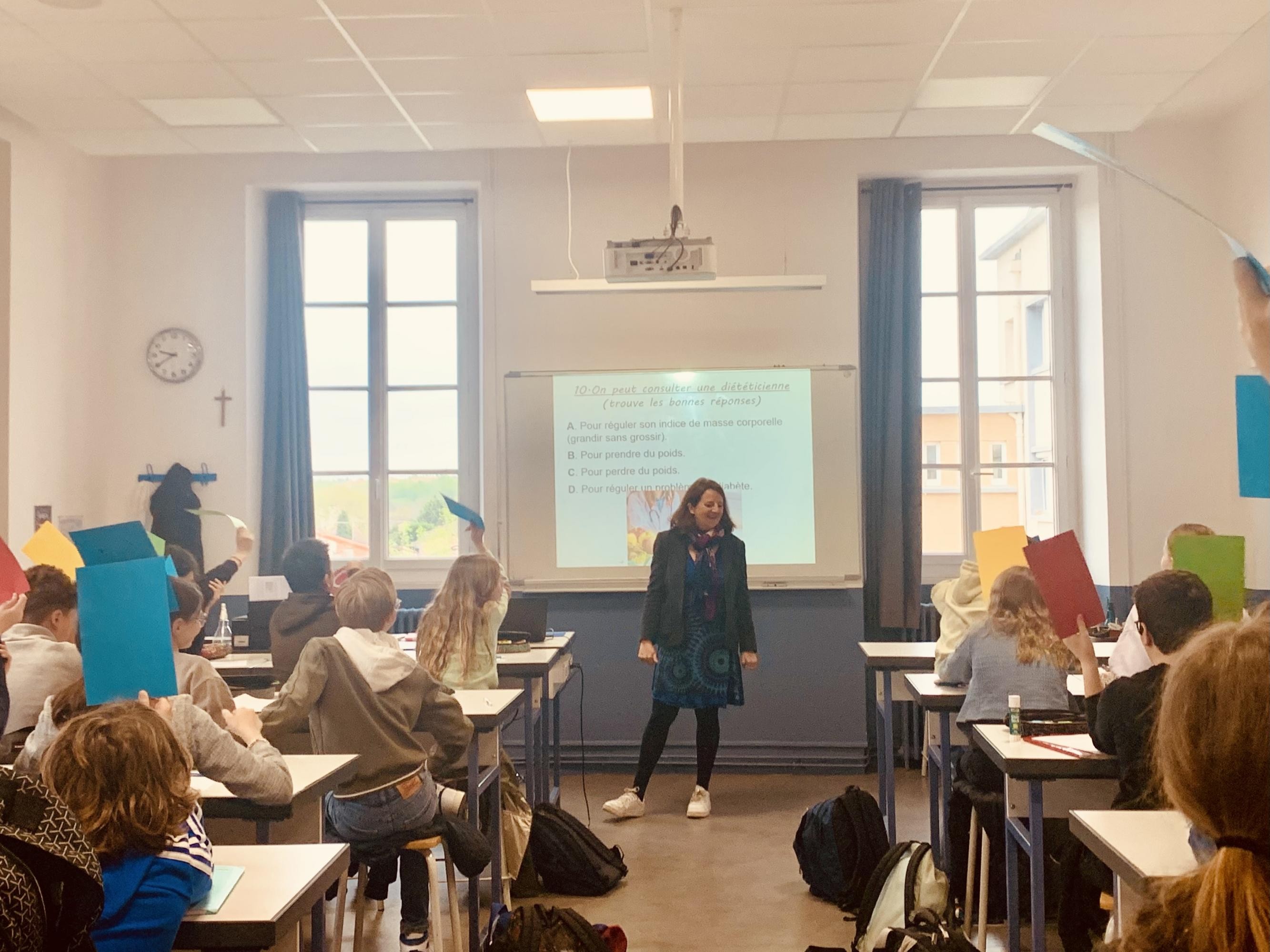 Afin de compléter le cours de SVT sur la nutrition, les élèves de 5ème ont rencontré une diététicienne, Mme Metge-Cammas.