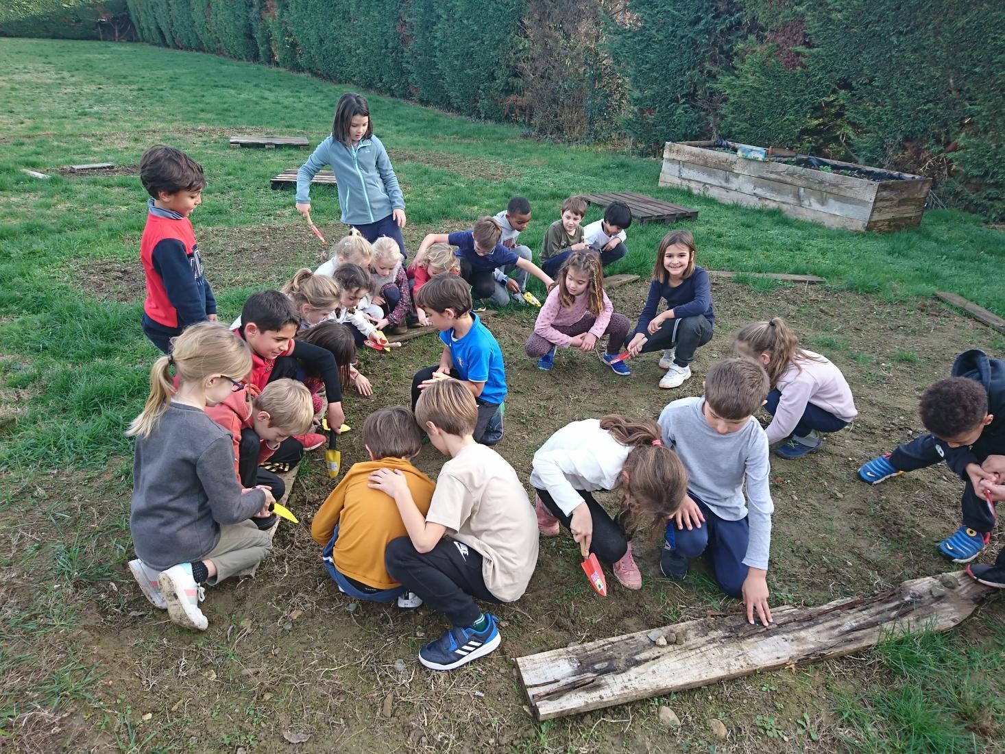 Les ce1 B ont réalisé des expériences pour observer les conditions nécessaires au développement des bulbes. Ils ont également planté des bulbes dans le potager pour suivre leur croissance.