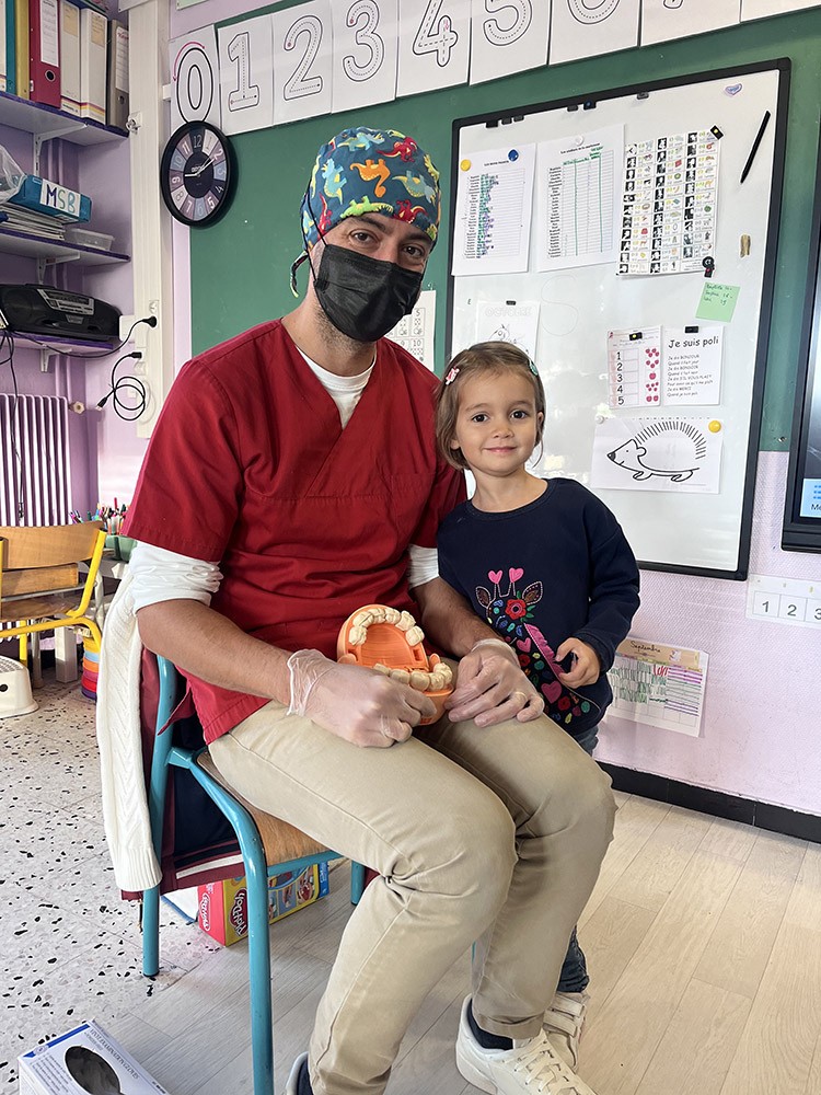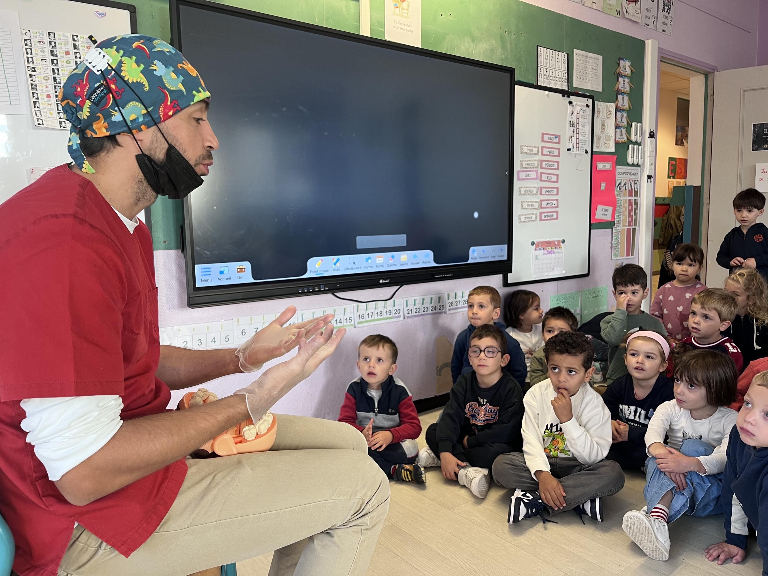Pour l’occasion, ils étaient venus en tenue, avec leurs blouses, leurs masques et tout leur matériel. Les enfants étaient très impressionnés… mais aussi très curieux ! Le but de cette rencontre était de faire disparaître la peur souvent associée à la visite chez le dentiste pour nos élèves.