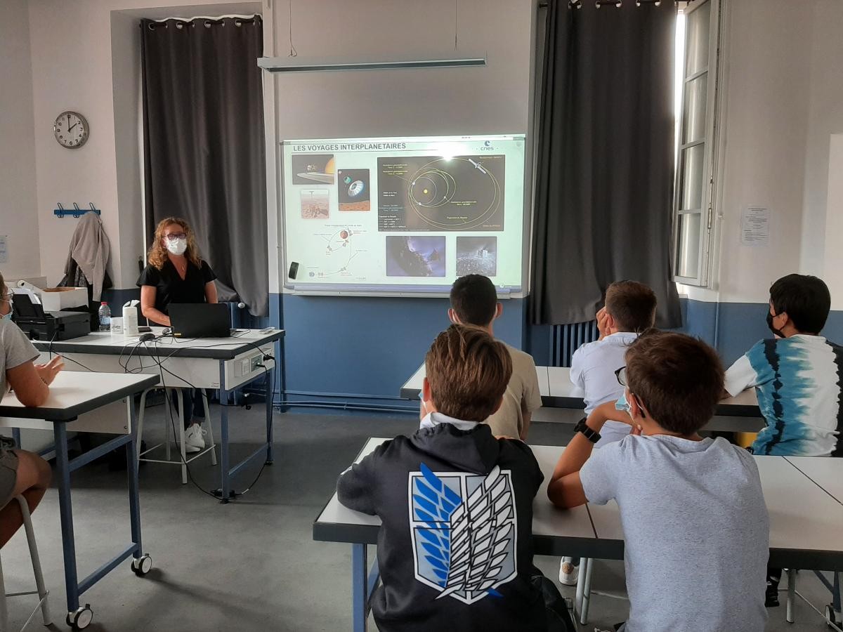 11 élèves de 4ème ont eu la chance d'assister à la conférence de Mme Angélique Gaudel, du Centre National d'Etudes Spatiales(CNES). Les élèves ont découvert les missions du CNES ainsi que les activités de Thomas Pesquet à bord de l'ISS.