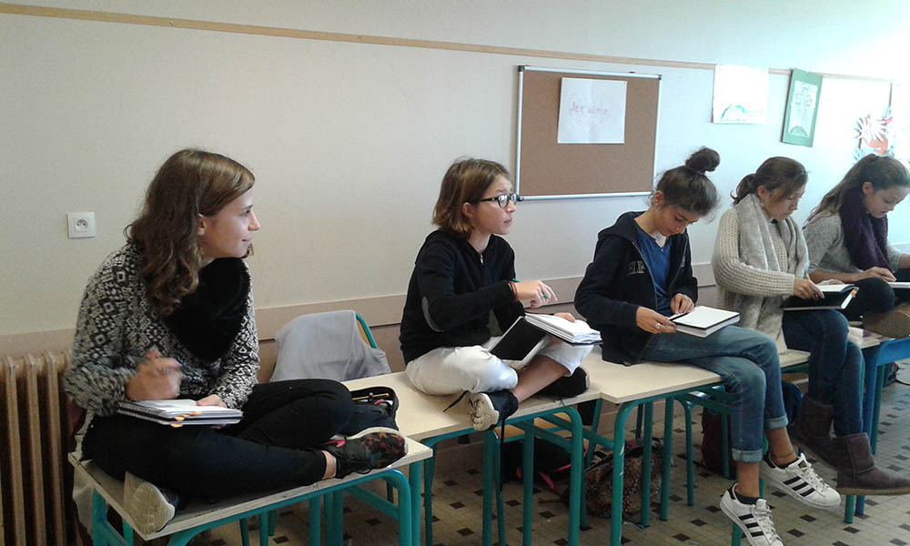 L'association Délire d'encre organise tous les ans le festival Terres d'ailleurs qui permet une rencontre et des échanges entre un carnettiste et des élèves. Cette année les 5ème D ont rencontré Aurélie Calmet qui leur a fait découvrir son voyage en Indonésie. Elle leur a montré un trailer de ce voyage qui va permettre de réaliser un film. Ensuite, ils ont découvert le matériel à dessin avant de s'essayer eux-mêmes au dessin. Pendant ce temps, les 4èmes A rencontraient Claire Marca qui leur a les différents genres de carnets de voyages jusqu'au plus récent qui associe l'image mobile et le photo-montage. Son dernier livre, "Voyage en Terre d'Arabie" et "Algérie" ont permis des échanges intéressants.