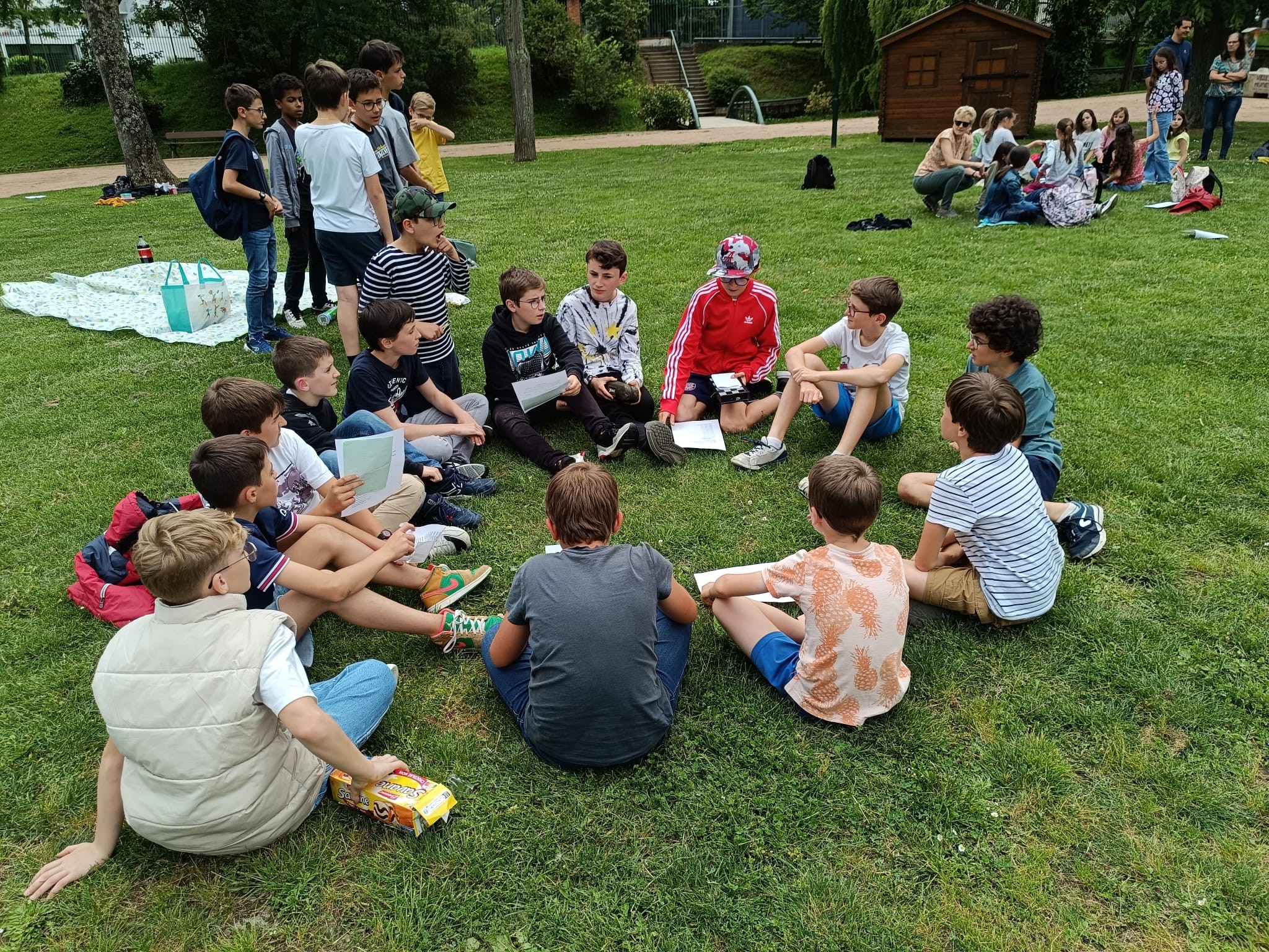 En effet, Mme Boutan, leur professeure de français, avait réussi à organiser une correspondance scolaire entre les deux groupes depuis septembre 2023. Cette après-midi là fut alors une belle occasion pour les élèves-correspondants de se rencontrer physiquement pour la première fois. Arrivés avec une poésie à offrir, les correspondants ont échangé, ont appris à se connaître au travers du jeu de portrait chinois et ont partagé un goûter convivial grâce à une météo favorable.