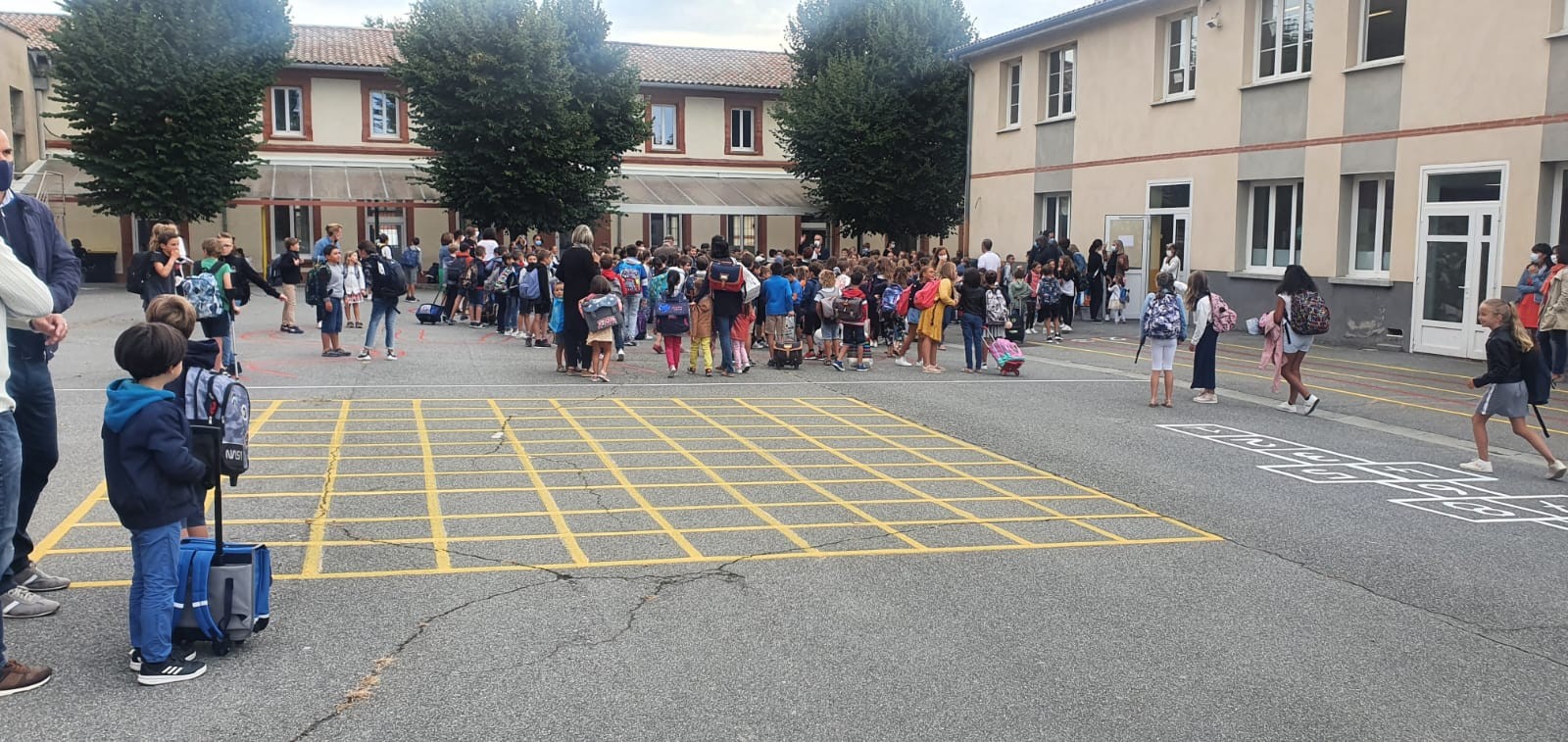 Le mardi 2 Septembre 2020, l'école faisait sa rentrée avec son nouveau Directeur, Mr Vacaresse, qui remplace Mme Pages, partie à la retraite cet été. Voici quelques photos de l'appel des classes pour illustrer cette première rentrée.