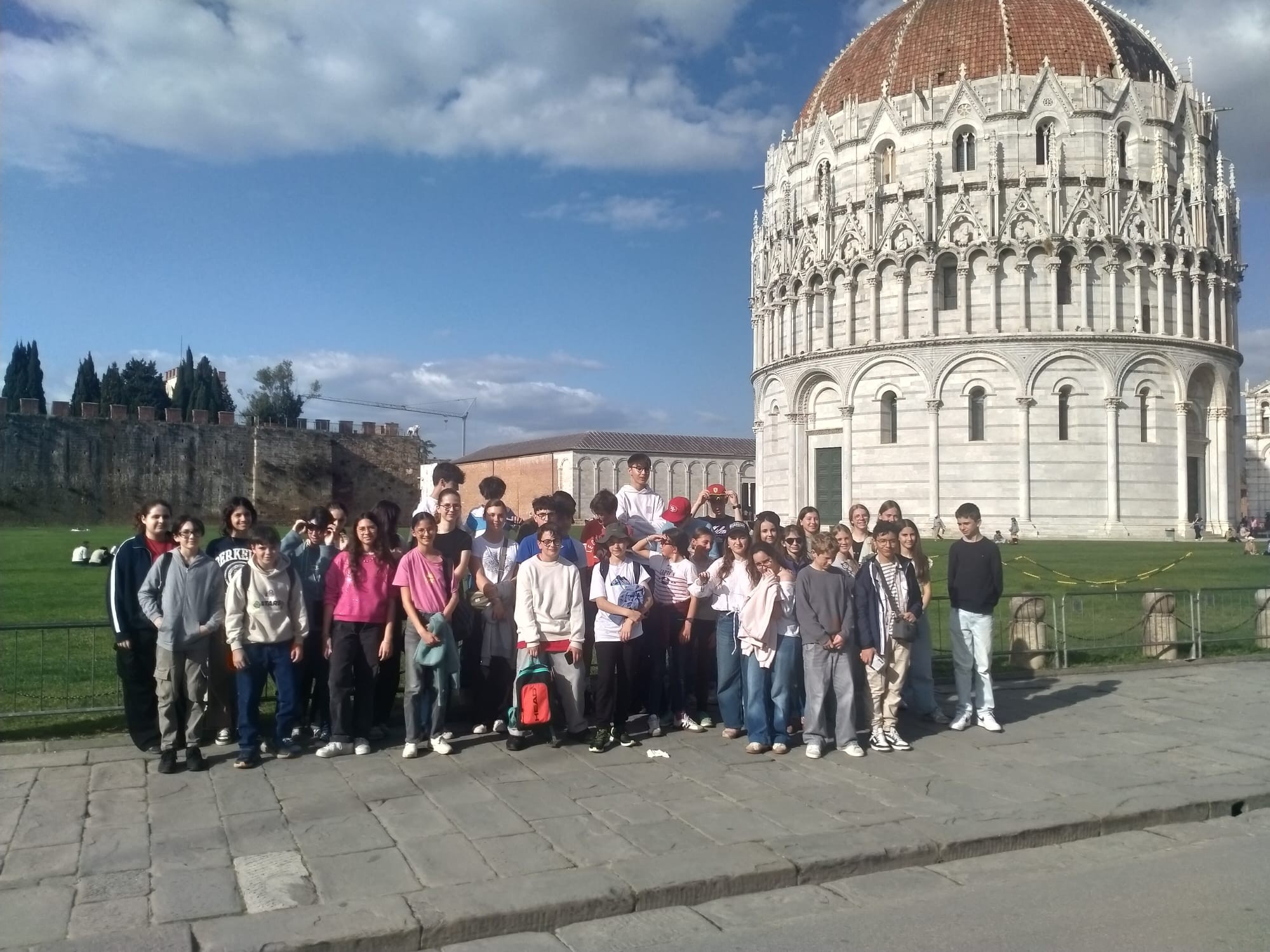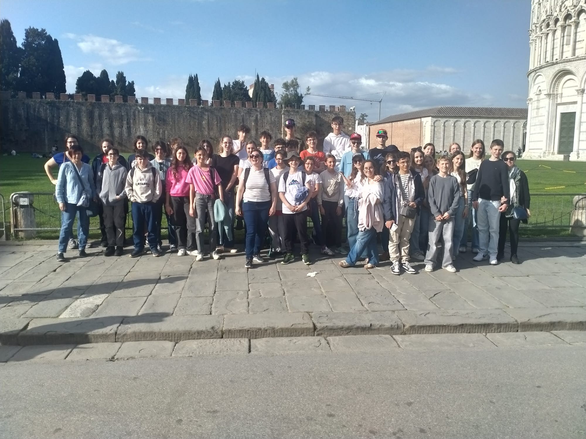 Vers 15h, nous avons repris la route en direction de Pise, où une nouvelle merveille architecturale les attendait. Les jeunes se sont prêtés avec enthousiasme à un concours photo des plus originaux, avec pour défi de “redresser” la célèbre tour… fous rires garantis ! La journée s’est terminée pour certain autour d’une glace bien méritée, qui a ravi tout le monde.