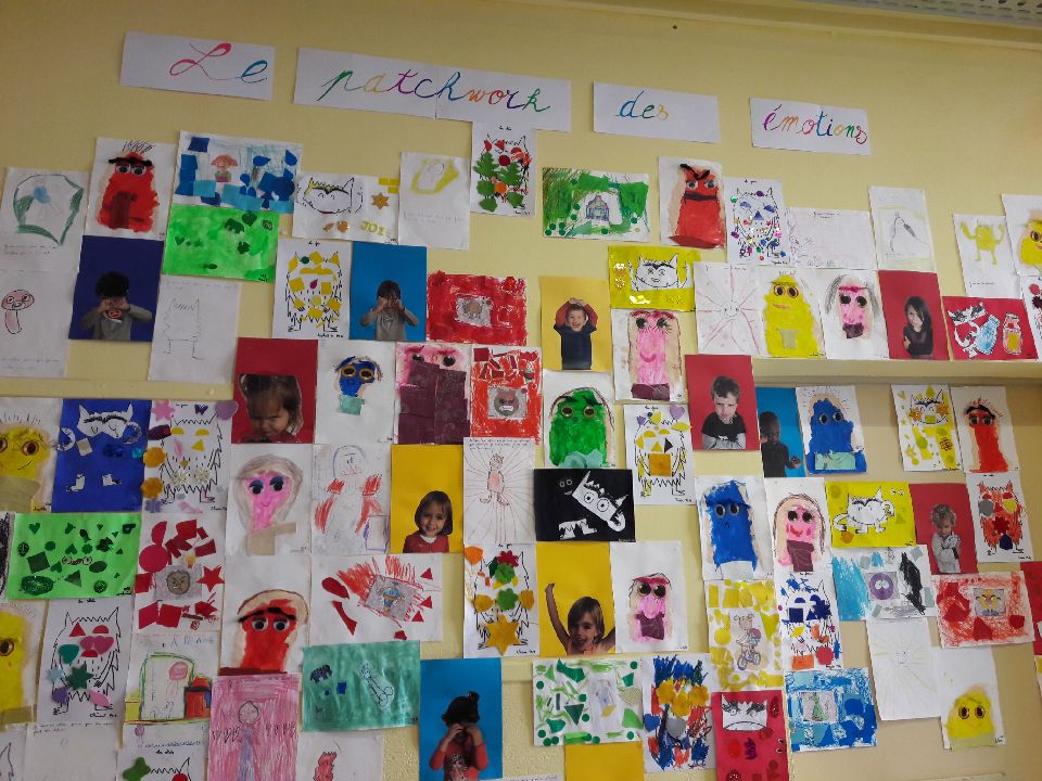 Ainsi chaque enfant a pu exprimer son émotion à un instant donné par un dessin, un collage, une photo, un écrit... Ce projet a permis à chacun de verbaliser au quotidien les émotions ressenties.