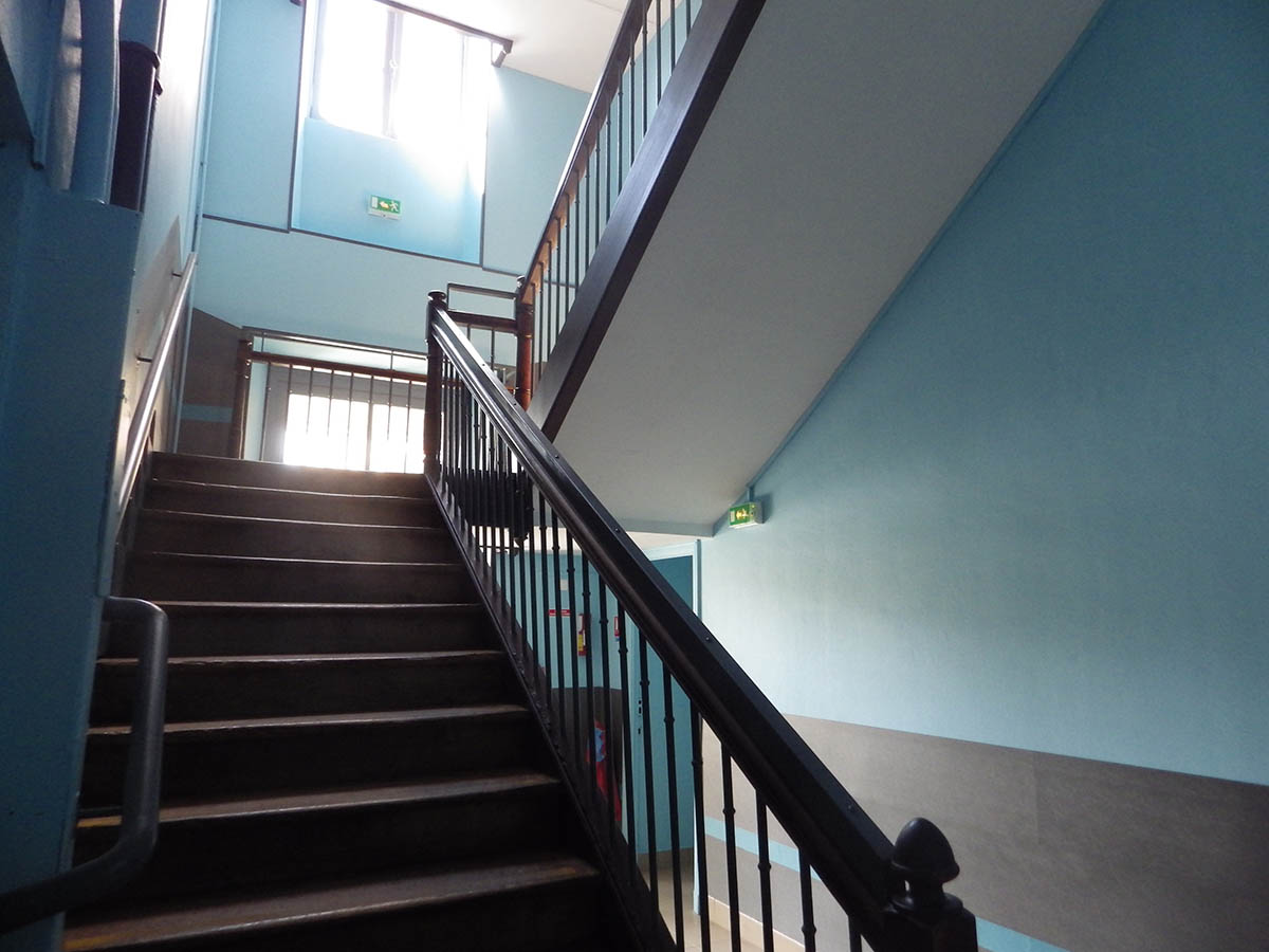 Cet été, des travaux ont été réalisés au niveau de l'établissement. En voici quelques exemples : la façade Rue des Frères st en train d'être refaite. De même, la construction des 3 salles de classes côté collège avance. Enfin, la cage d'escalier du bâtiment central a été totalement repeinte.