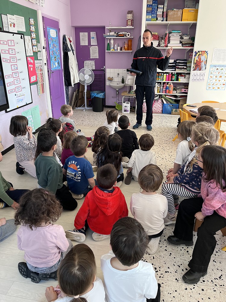 Nous avons eu la chance d’accueillir en classe le papa de Baptiste, Monsieur Prouvot, qui est pompier. Il est venu nous apprendre les premiers gestes de sécurité et nous expliquer comment réagir en cas d’urgence.