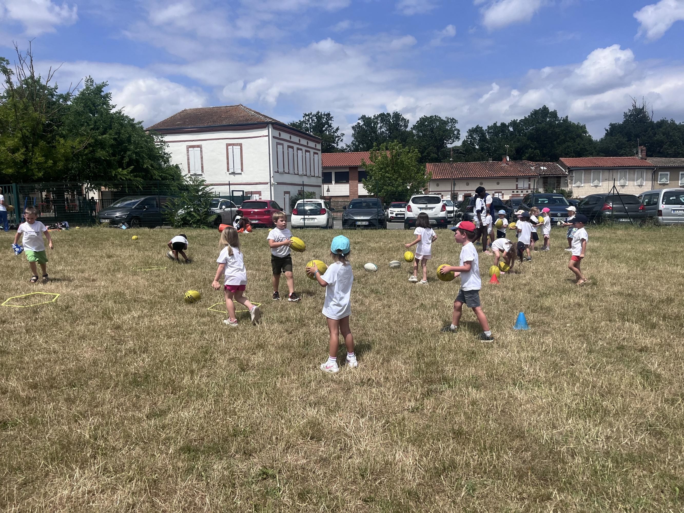 Hier, notre école maternelle a vibré au rythme du ballon ovale lors d'une formidable journée autour du rugby, organisée avec la participation précieuse de papas d'élèves bénévoles et de bénévoles du Colomiers Rugby club.