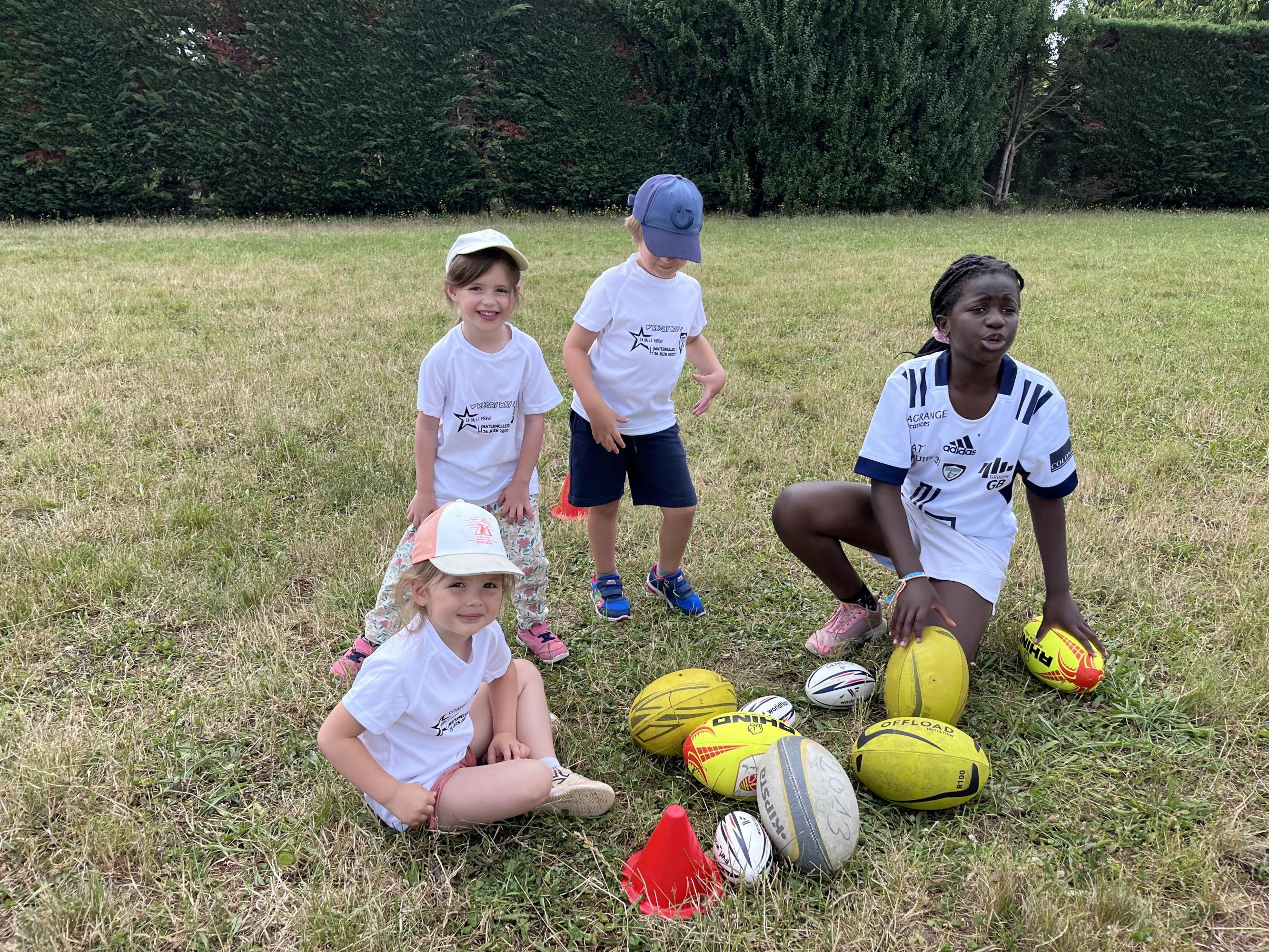Tous les élèves, de la petite à la grande section, ont pu découvrir l'univers du rugby à travers une série d'ateliers adaptés, pensés pour développer la motricité globale et transmettre les valeurs fondamentales de ce sport : esprit d'équipe, respect, entraide et dépassement de soi.